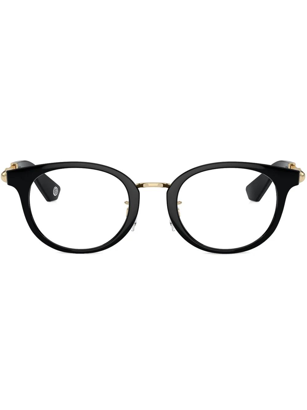 black acetate/metal round frame clear lenses nose pads straight arms engraved logo curved tips All glasses from FARFETCH are sold as non-prescription frames. These glasses come with a protective case.