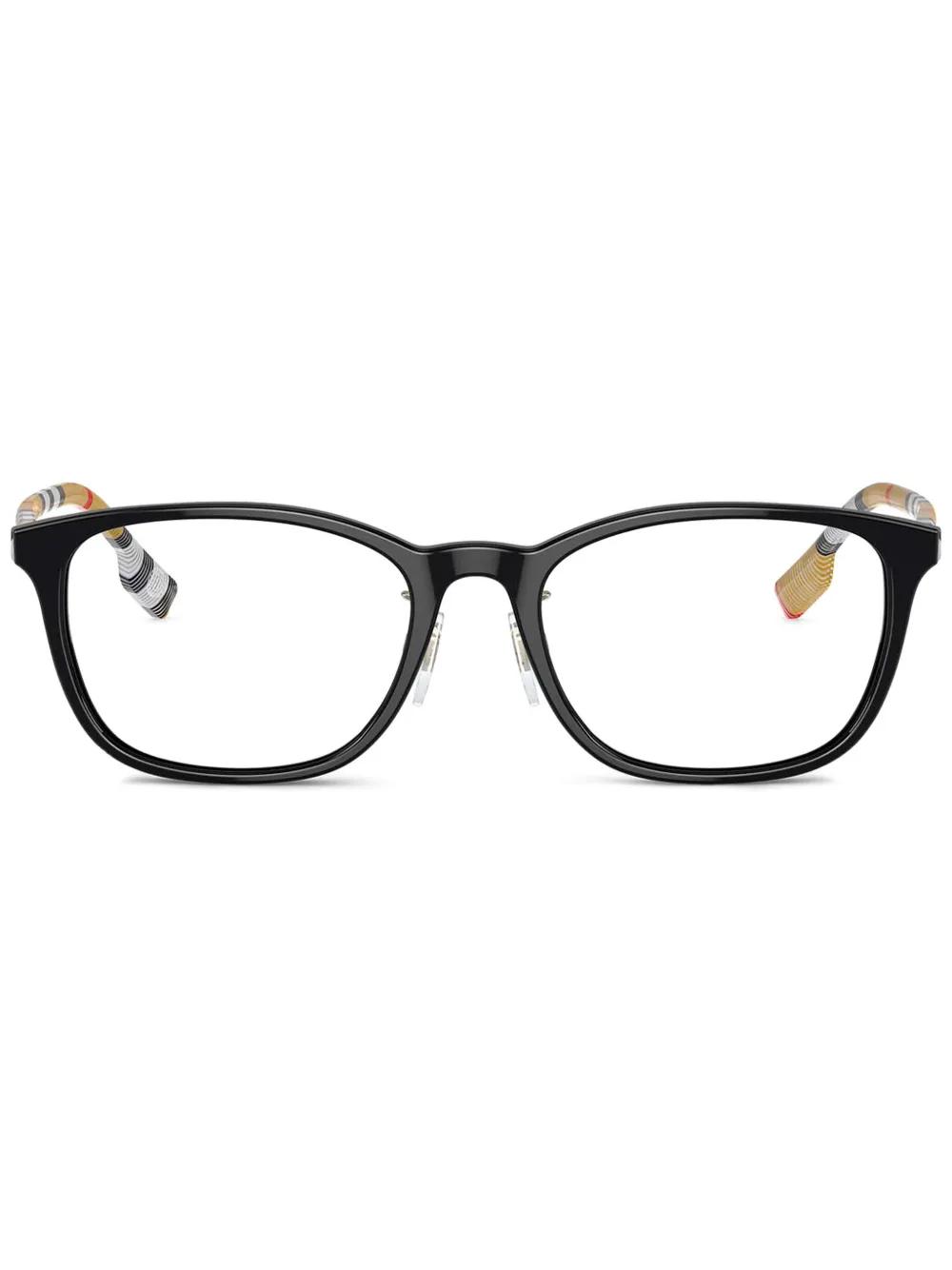 black acetate check pattern square frame clear lenses straight arms curved tips These glasses come with a protective case. All glasses from FARFETCH are sold as non-prescription frames.