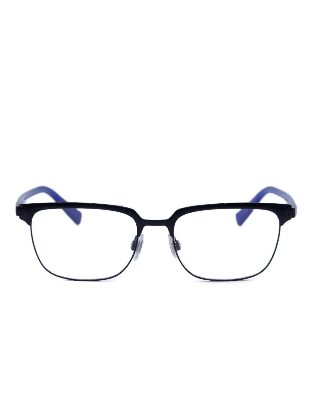 black square frame full rim clear demo lenses blue temples These glasses come with a protective case. All glasses from FARFETCH are sold as non-prescription frames.