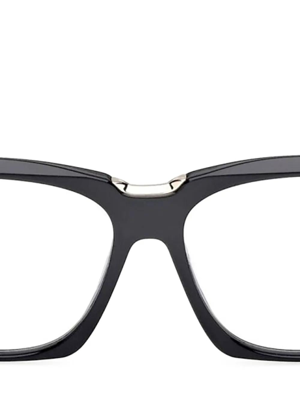 black geometric frame acetate material clear lenses metallic detail sharp angles These glasses come with a protective case. All glasses from FARFETCH are sold as non-prescription frames.