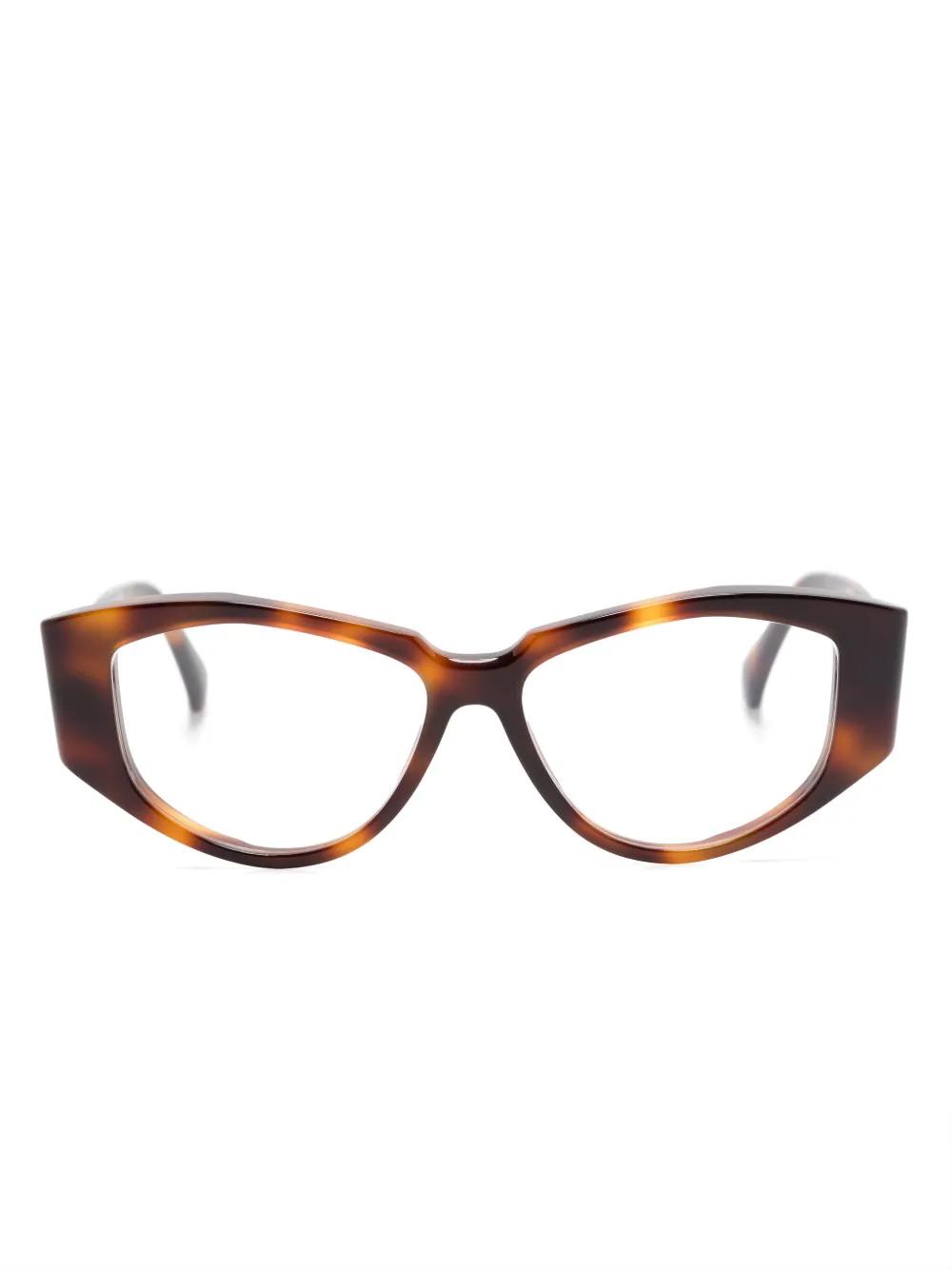cedar brown acetate tortoiseshell effect cat-eye frame clear lenses logo print at the arm straight arms curved tips These glasses come with a protective case. All glasses from FARFETCH are sold as non-prescription frames.