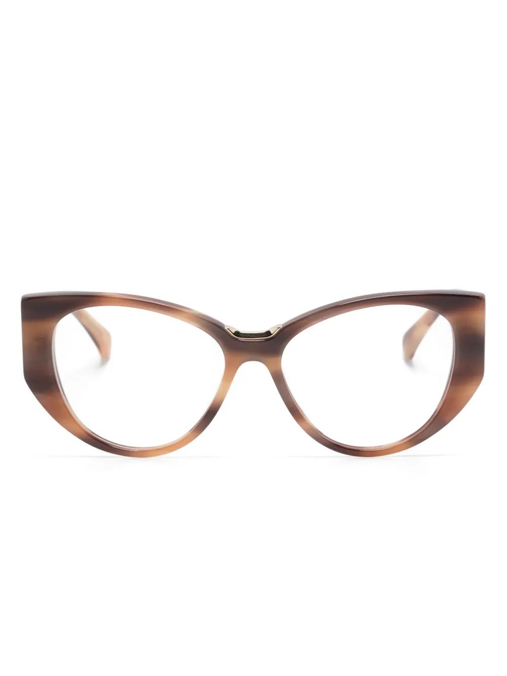 brown acetate abstract pattern print cat-eye frame clear lenses gold-tone hardware to the bridge logo-engraved arm straight arms with curved tips These glasses come with a protective case. All glasses from FARFETCH are sold as non-prescription frames.