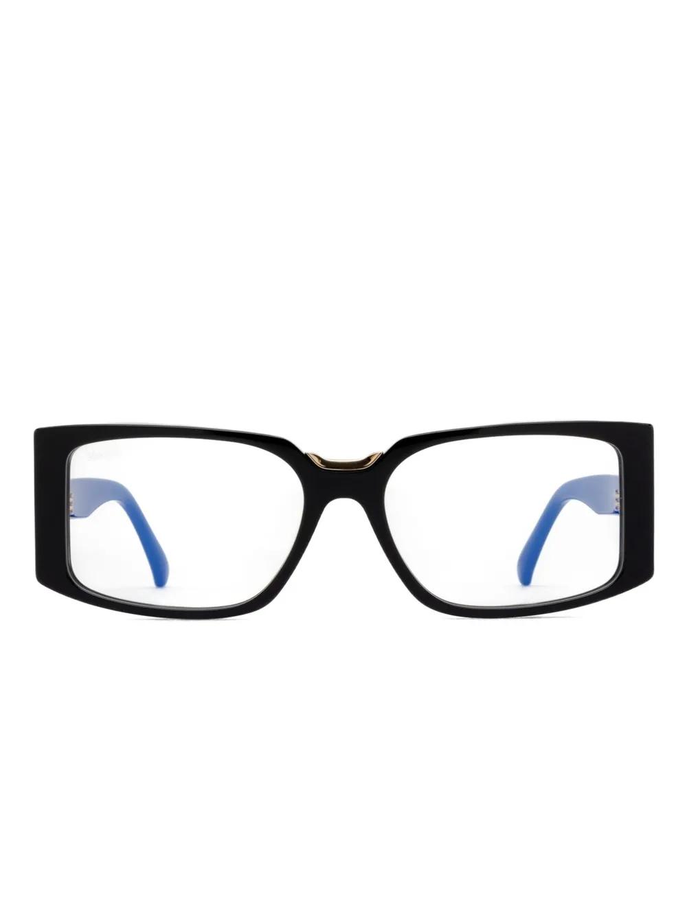 black blue temple tips rectangle frame straight arms These glasses come with a protective case. All glasses from FARFETCH are sold as non-prescription frames.