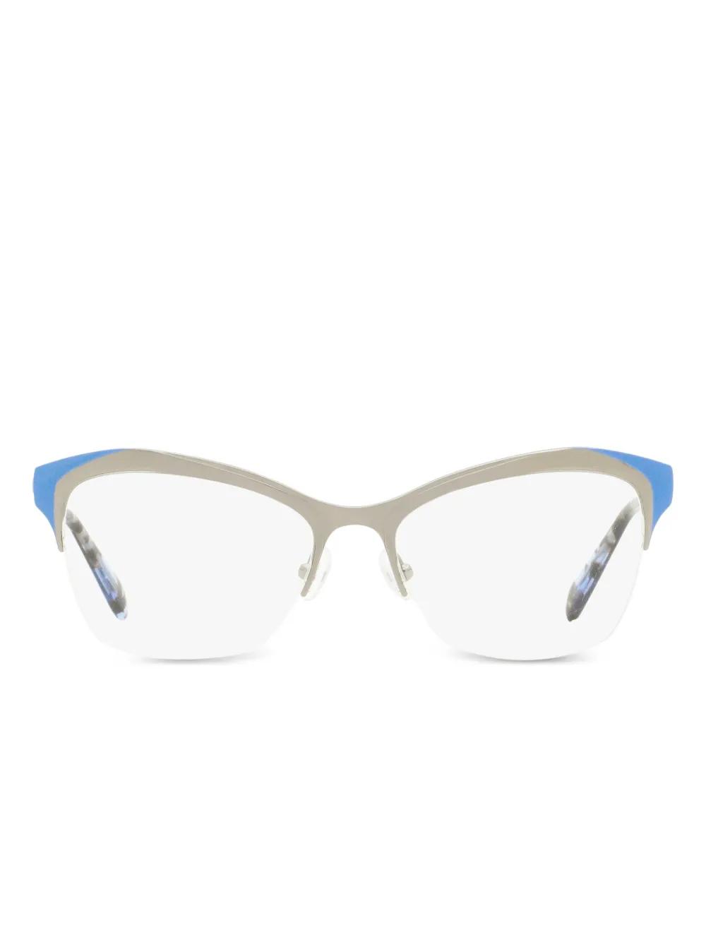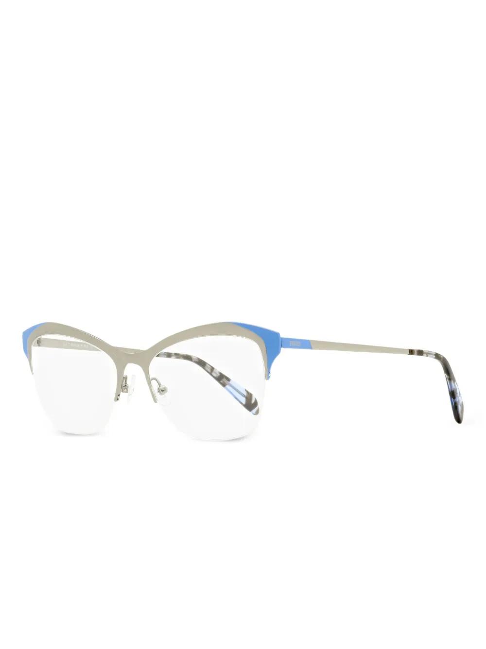 grey/blue geometric frame colour accents at corners branding on temples These glasses come with a protective case. All glasses from FARFETCH are sold as non-prescription frames.