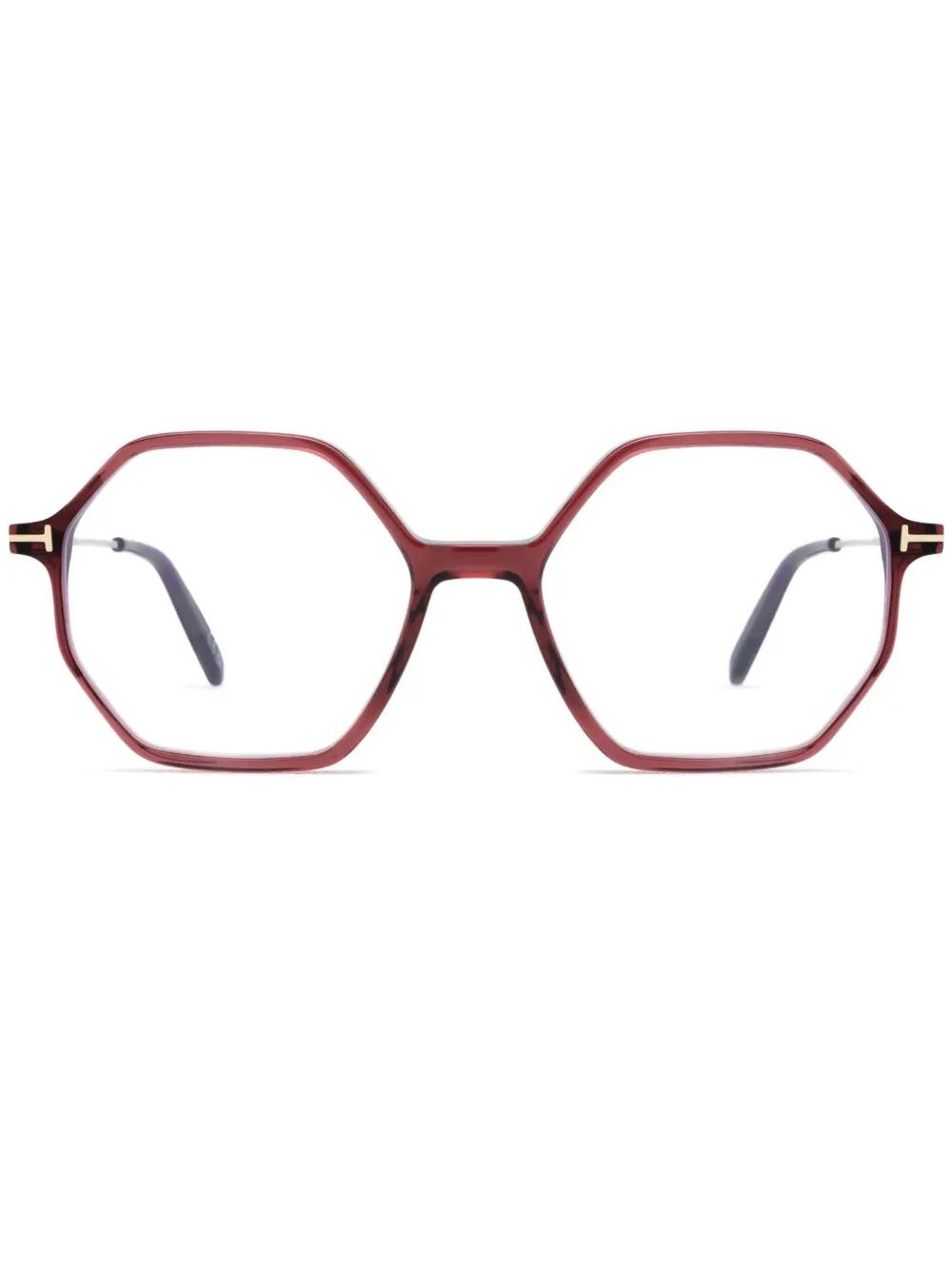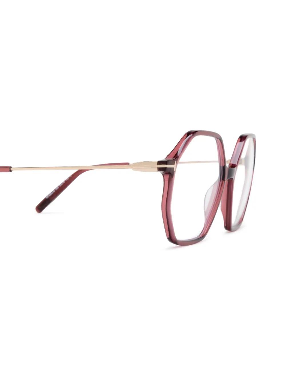bordeaux red acetate metal geometric frame clear lenses straight arms curved tips These glasses come with a protective case. All glasses from FARFETCH are sold as non-prescription frames.