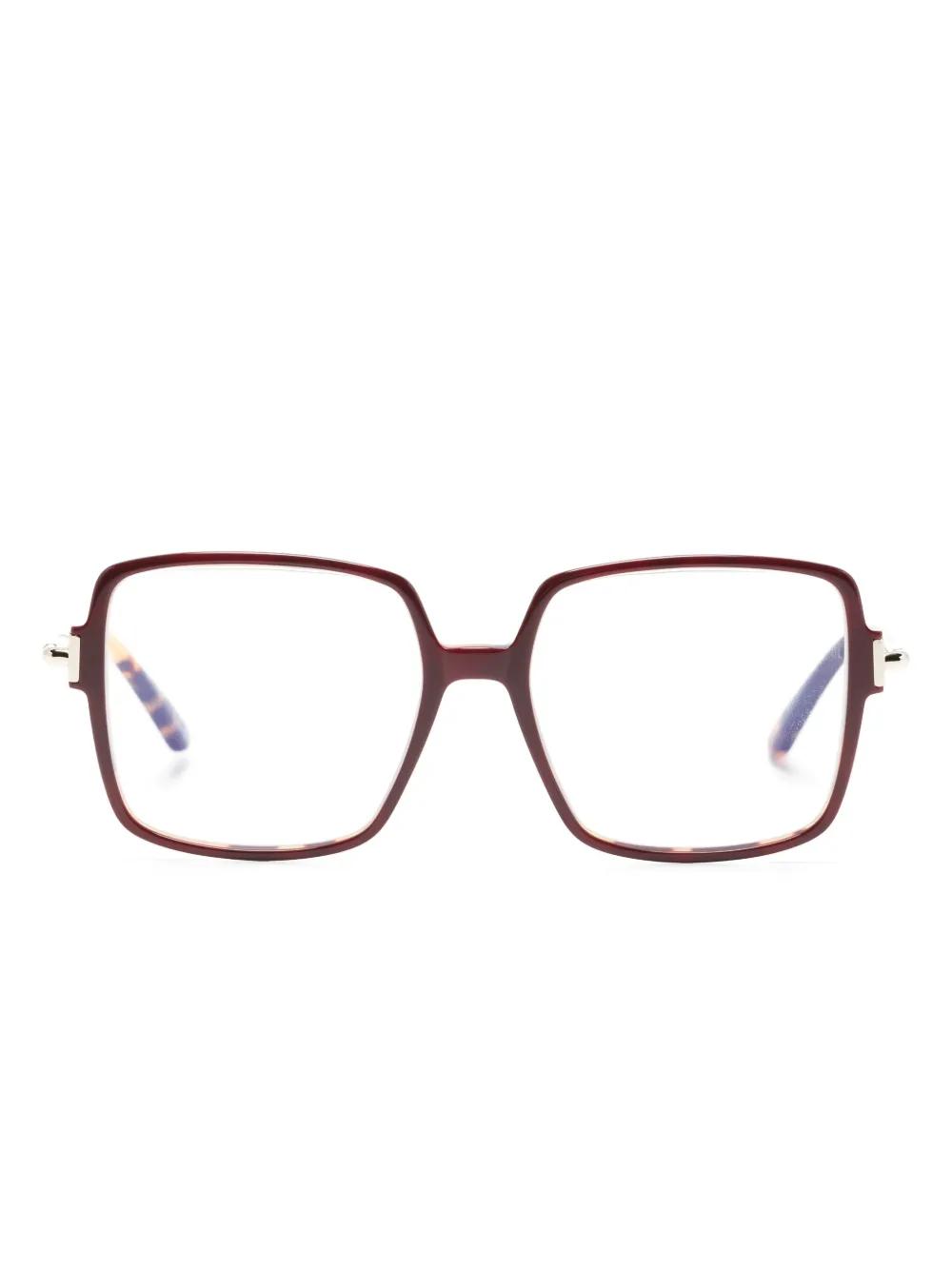 burgundy acetate tortoiseshell-effect detailing logo plaque at the arm clear lenses oversize frame straight arms curved tips These glasses come with a protective case. All glasses from FARFETCH are sold as non-prescription frames.
