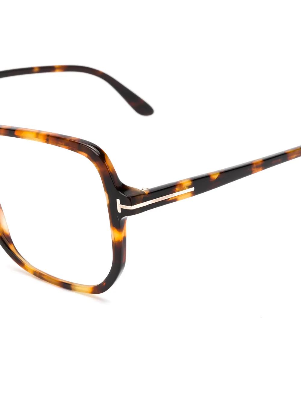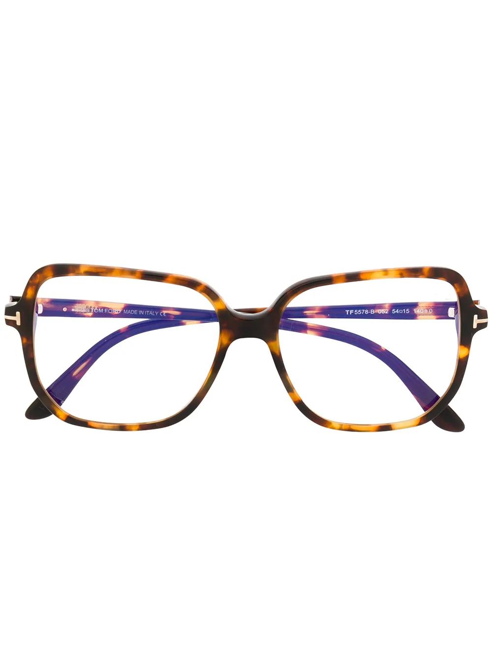 Brown oversized frame glasses from TOM FORD Eyewear featuring square frames, a straight bridge, a logo at the temple and straight arms with curved tips. This item comes with a protective case.