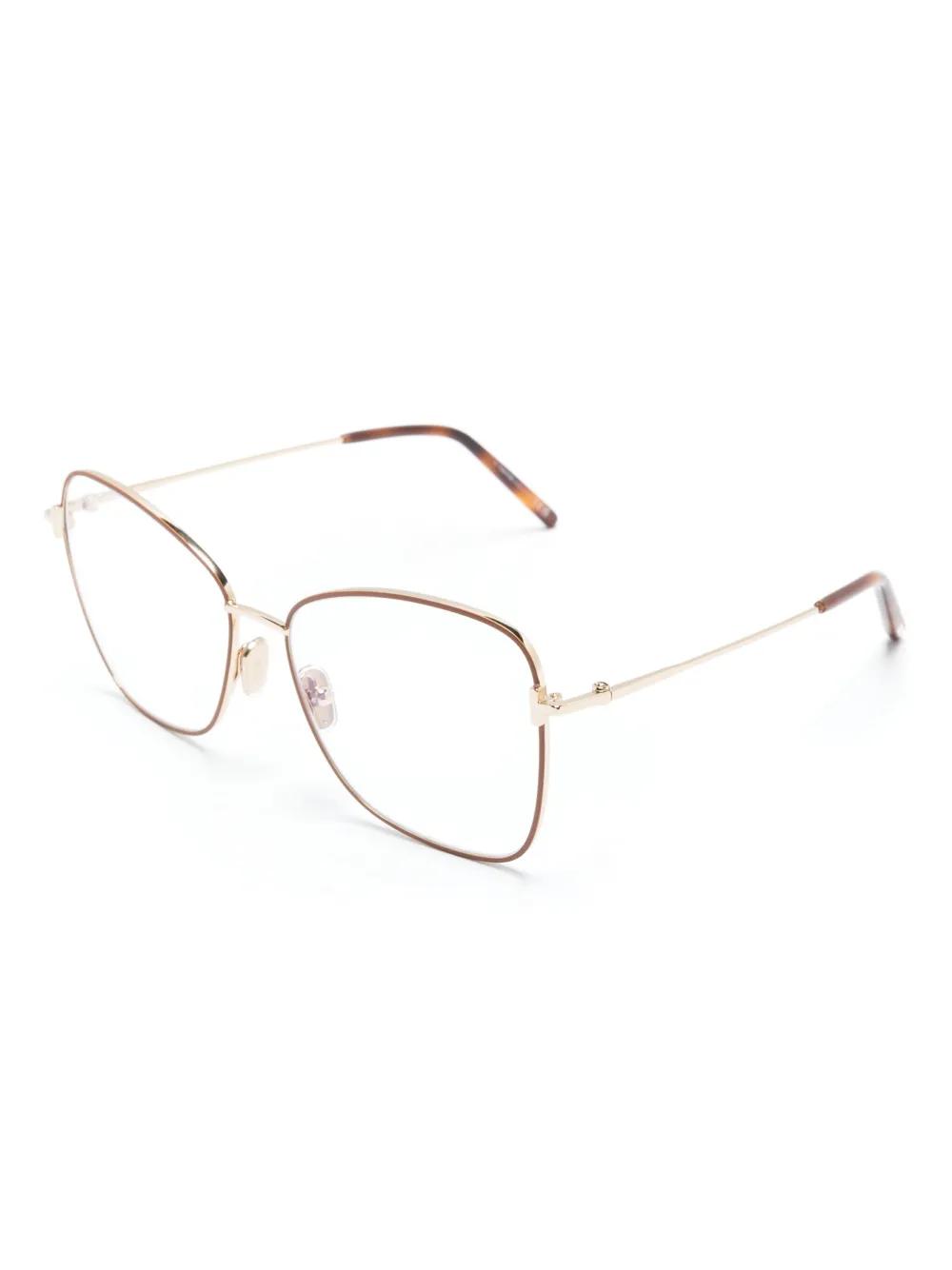 gold-tone/brown clear lenses butterfly frame straight arms curved tips These glasses come with a protective case. All glasses from FARFETCH are sold as non-prescription frames.