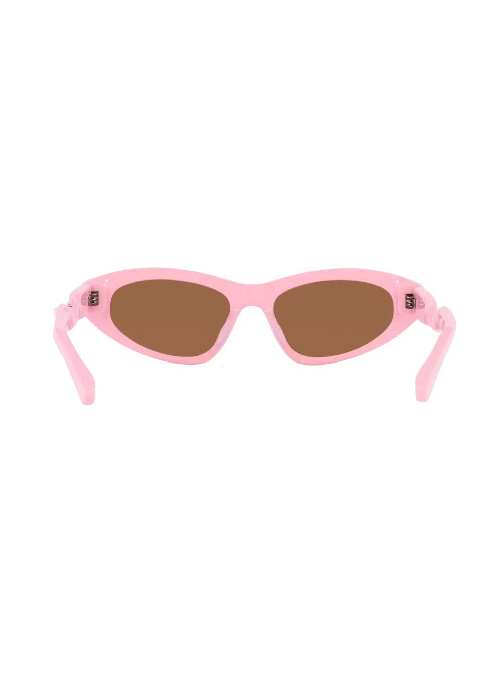 pink acetate cat-eye frame brown tinted lenses logo print to the front logo print at the arm straight arms twist detailing These glasses come with a protective case.