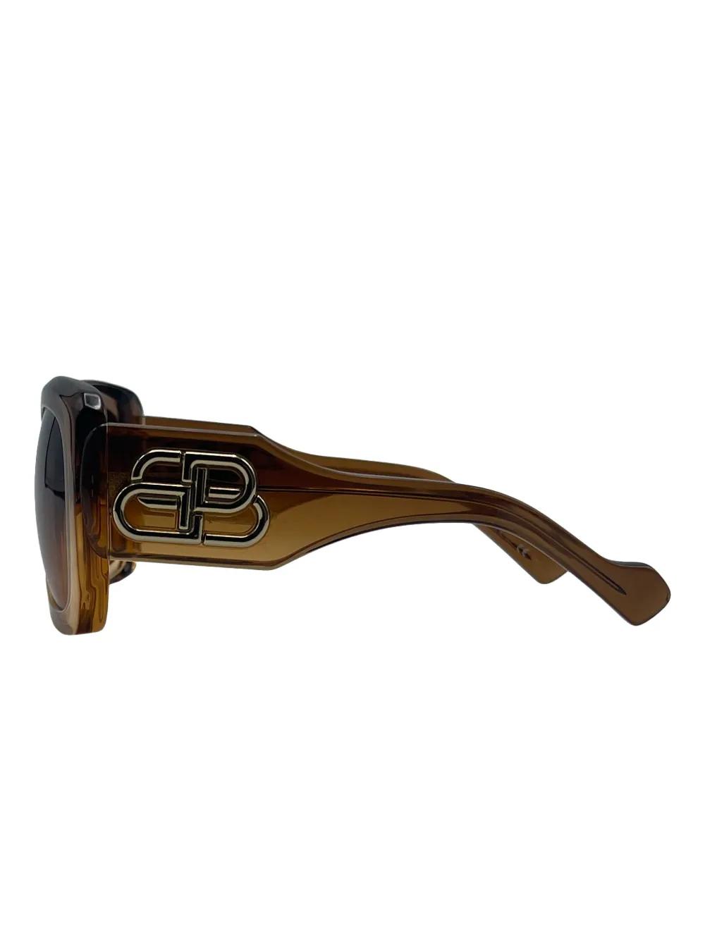 brown shaded lenses square frame logo detail These glasses come with a protective case.