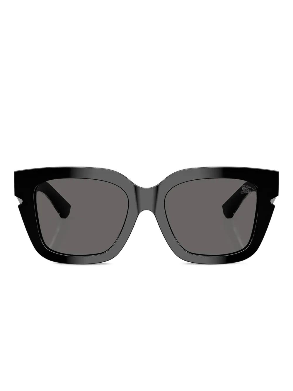 black gold-metal detail angular temples tinted lenses These glasses come with a protective case.