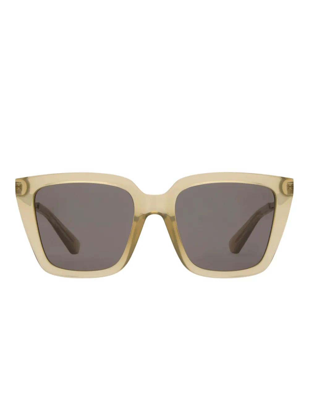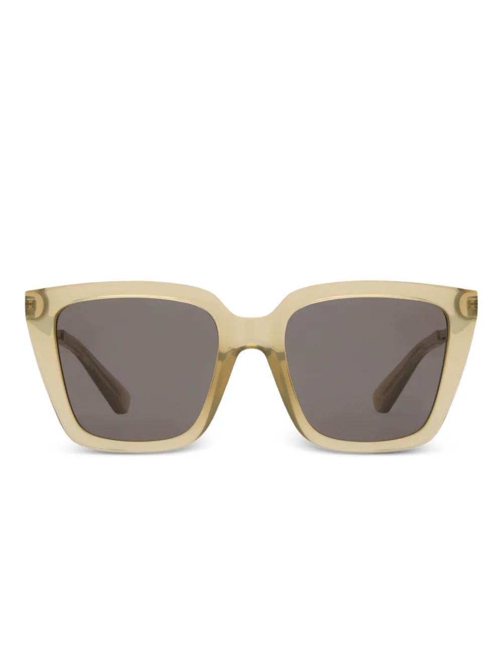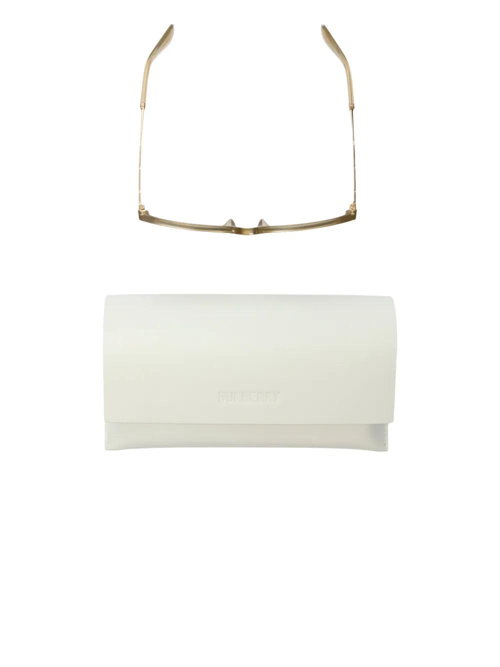 light beige square frame engraved logo-lettering at temples These glasses come with a protective case.