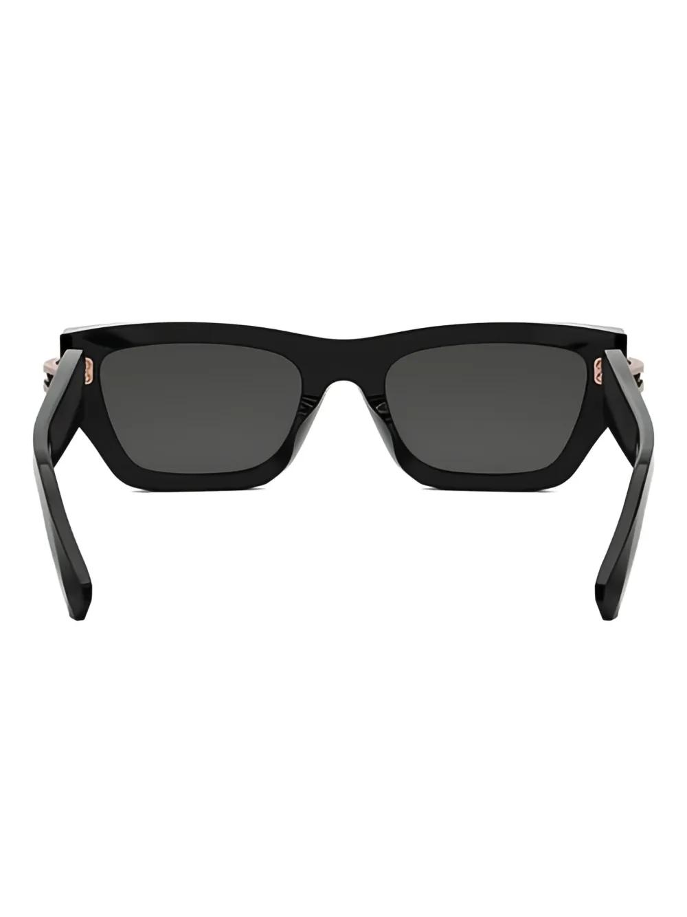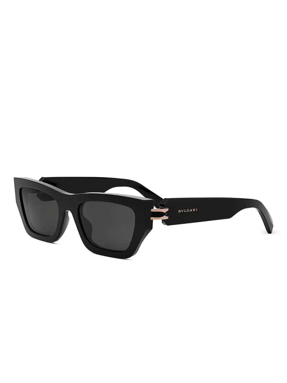 black geometric frame rose-gold accents dark grey lenses These glasses come with a protective case.