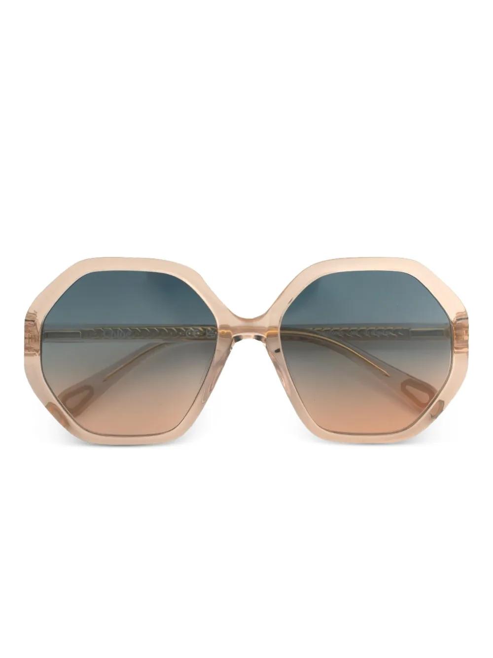 beige geometric frame gradient lenses gold-tone arms braided arm detail These sunglasses come with a protective case.