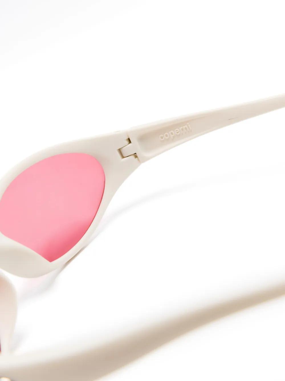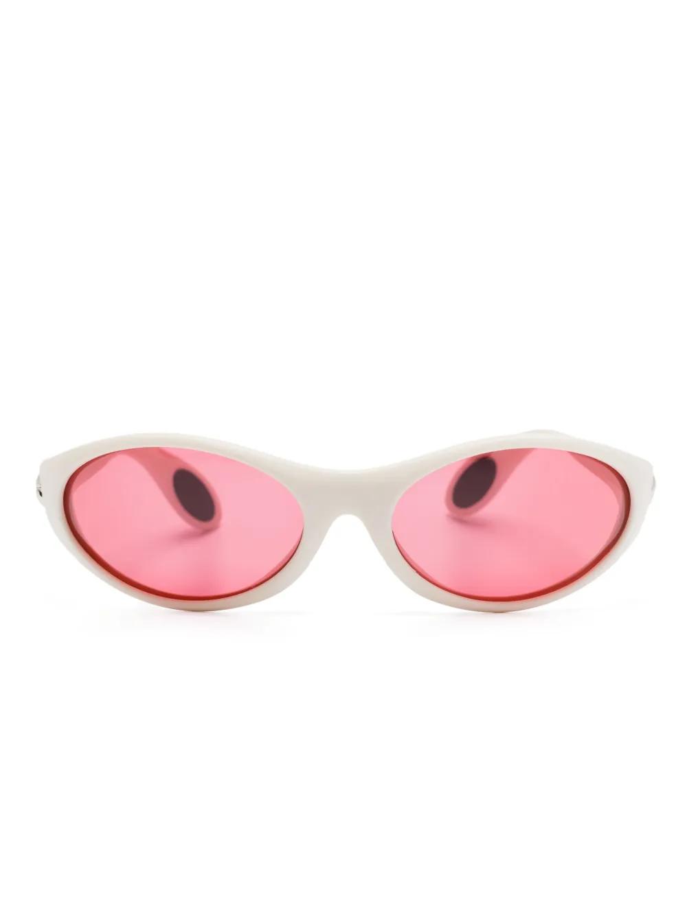 white acetate matte effect oval frame red tinted lenses silver-tone logo plaque to the arm straight arms with curved tips These glasses come with a protective case.