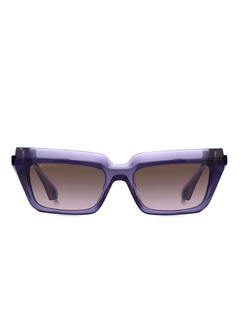 purple geometric frame gradient lenses extended arms subtle branding acetate material