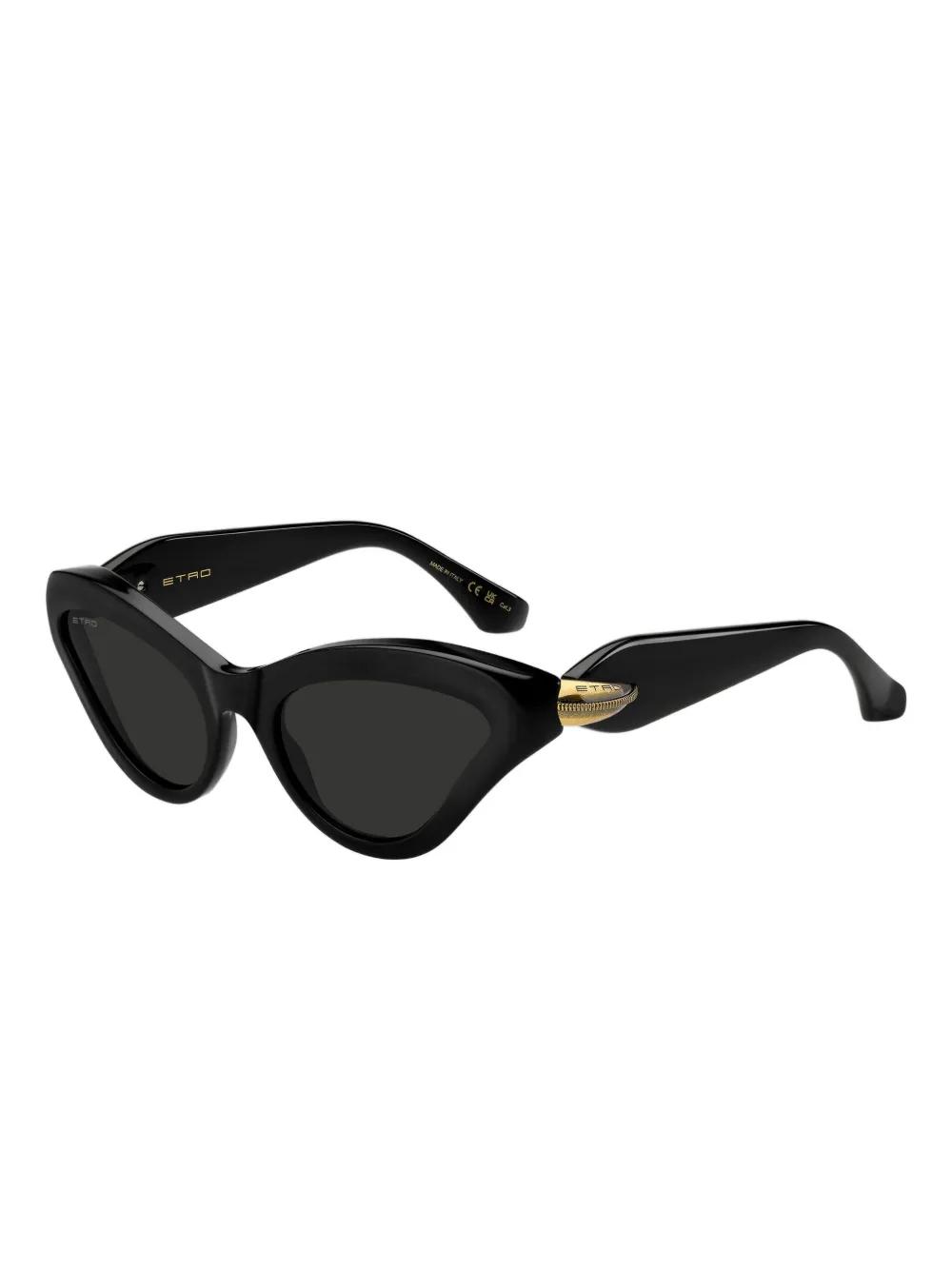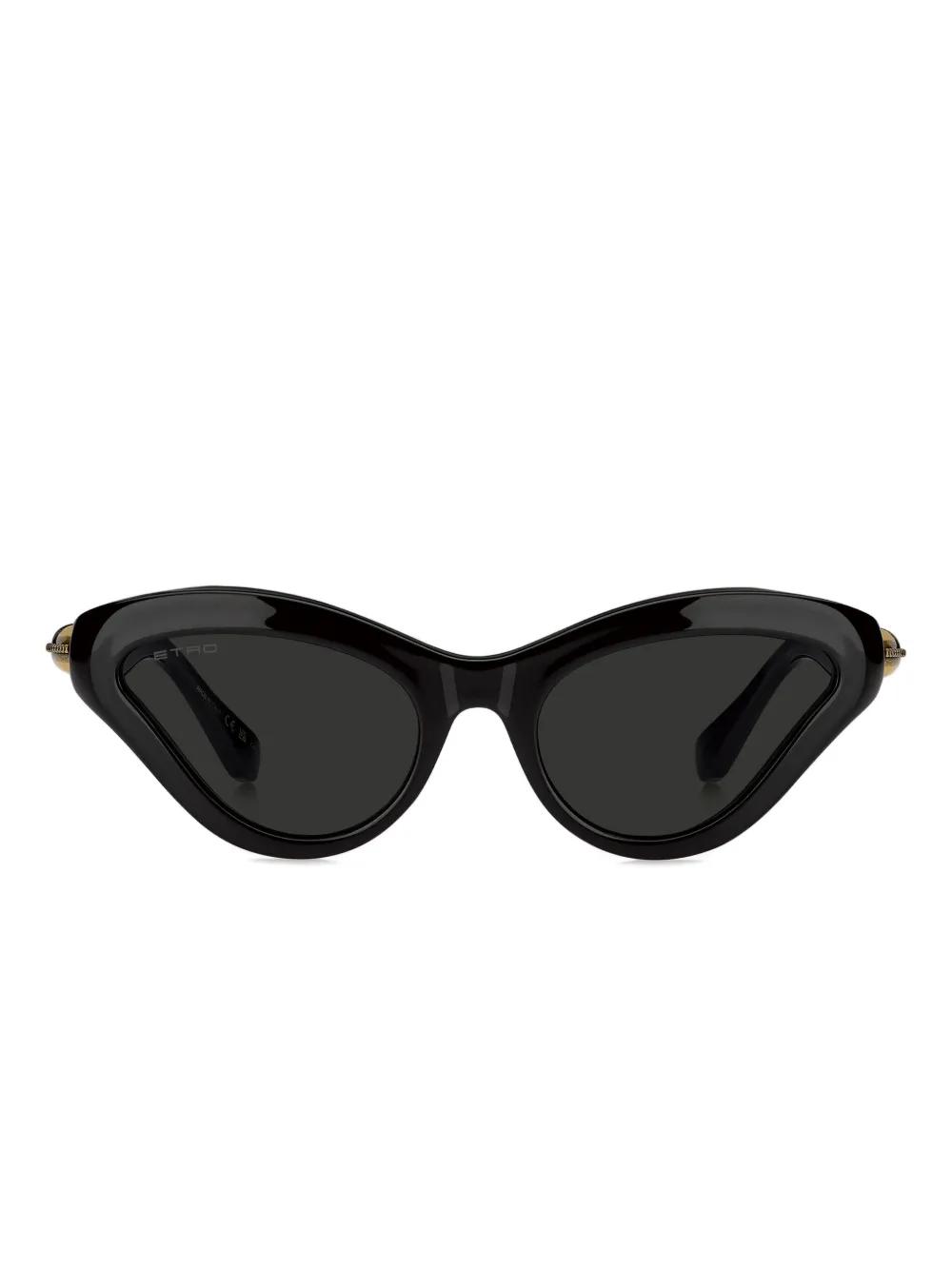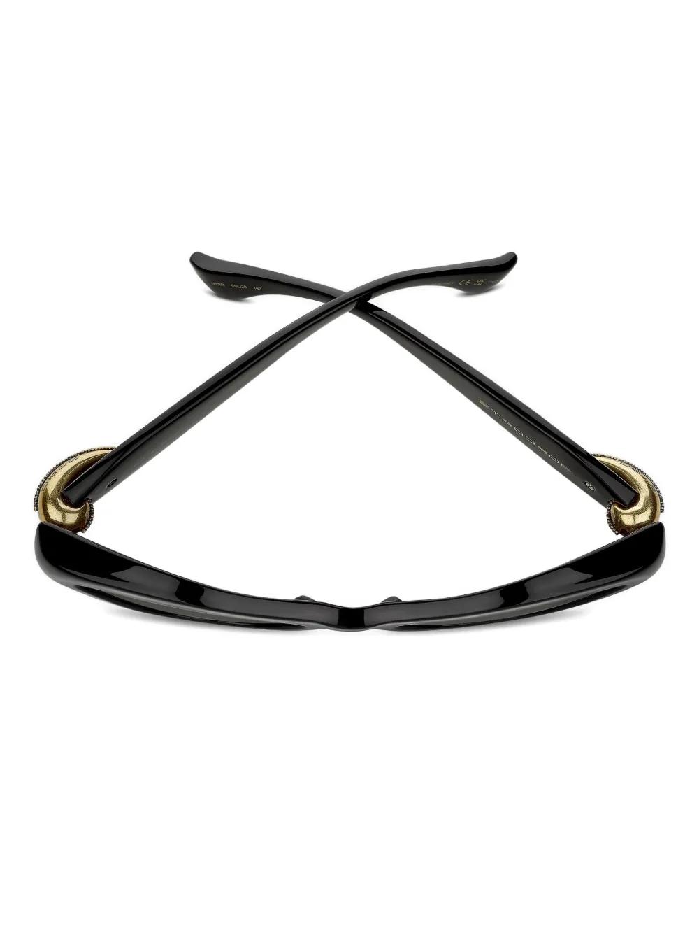 black cat-eye frame gold-tone embellishment dark grey lenses acetate construction subtle branding