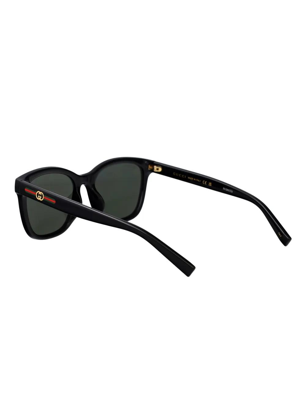 black interlocking GG detail tinted lenses straight arms curved tips These glasses come with a protective case.
