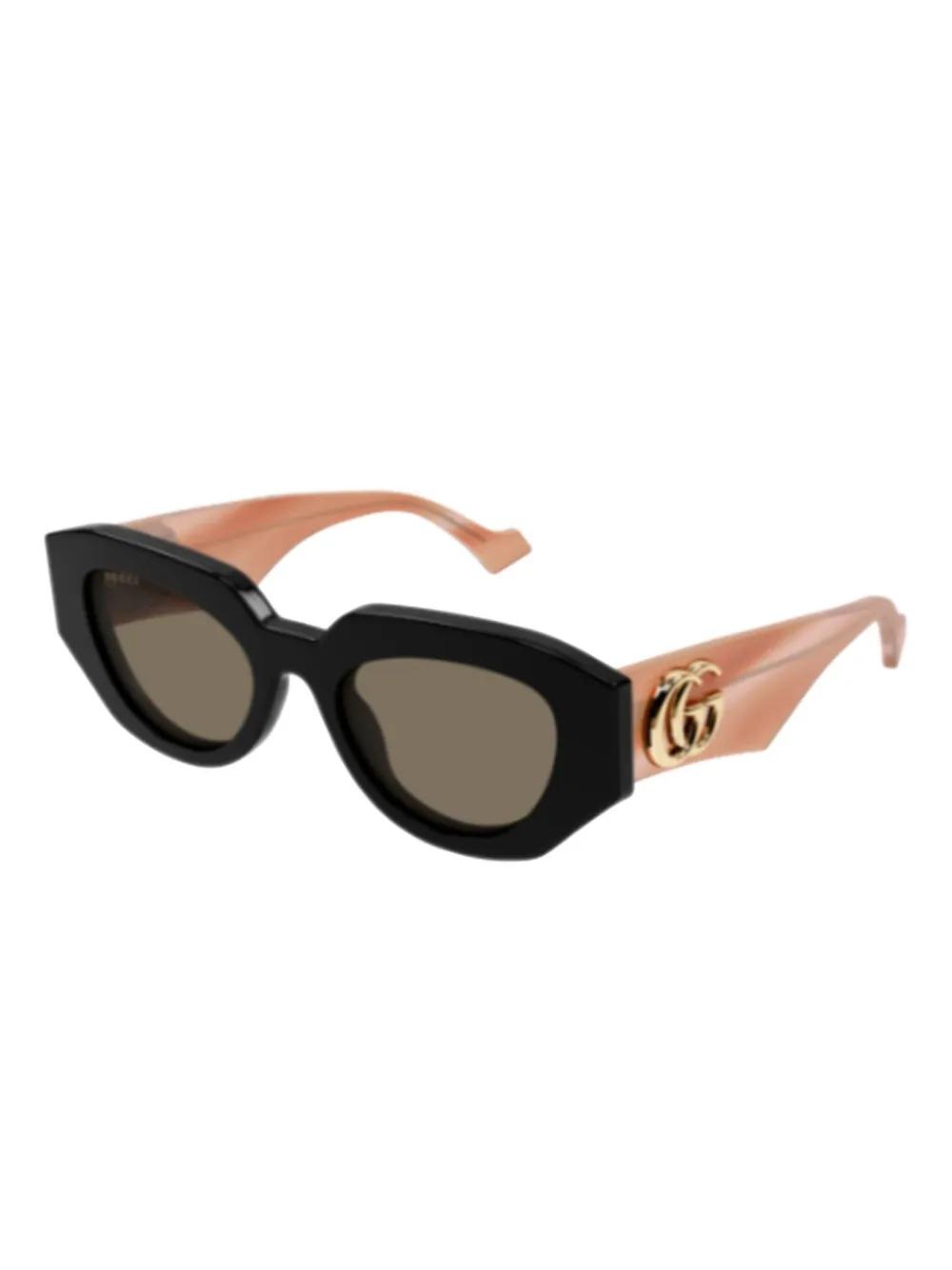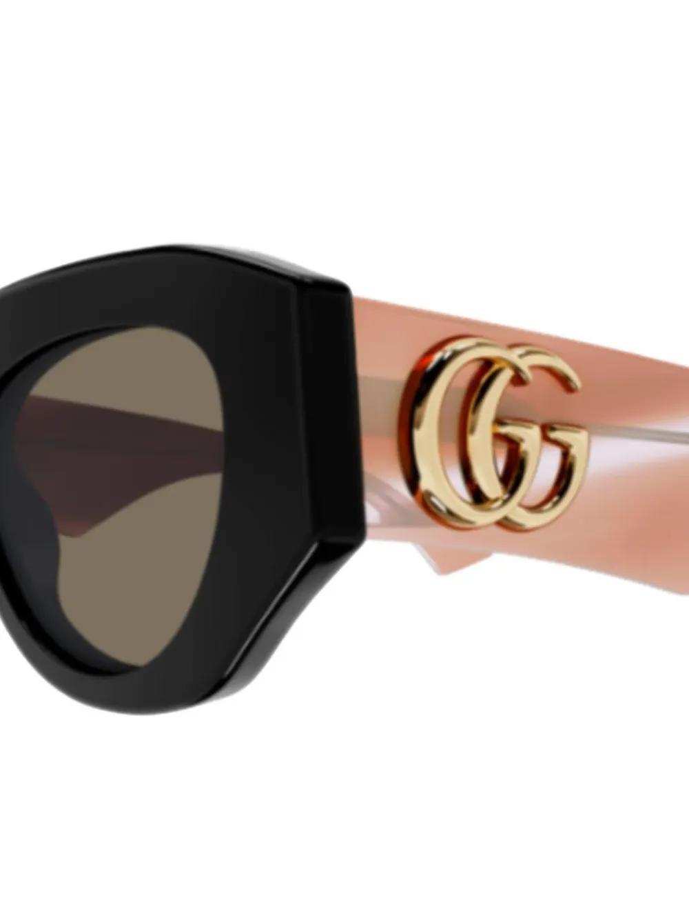 black cat-eye frame logo detail brown lenses nose pads These glasses come with a protective case.