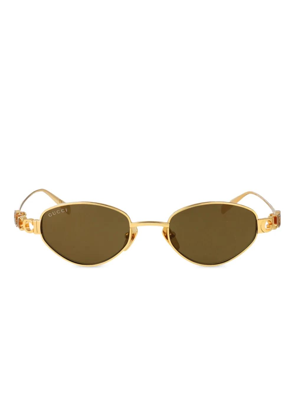 gold-tone oval frame logo plaque tinted lenses nose pads These glasses come with a protective case.