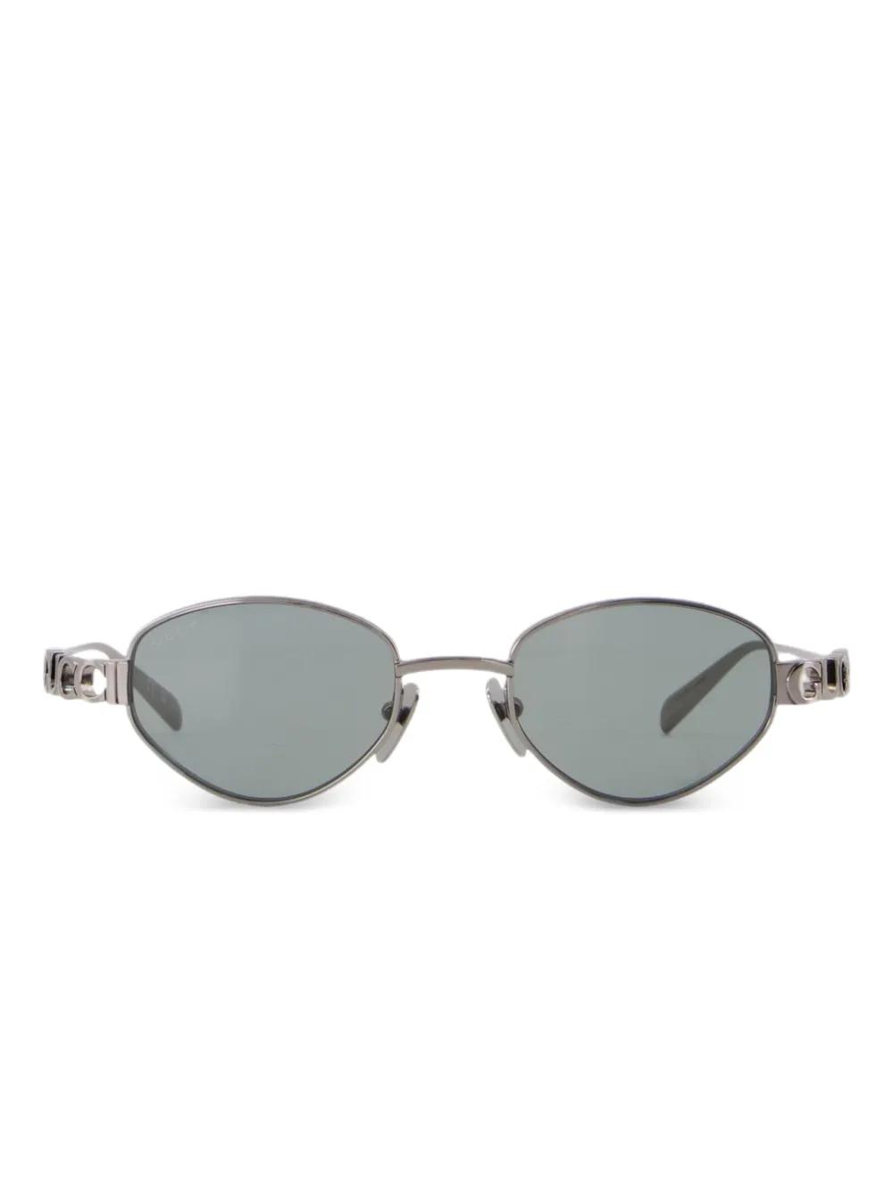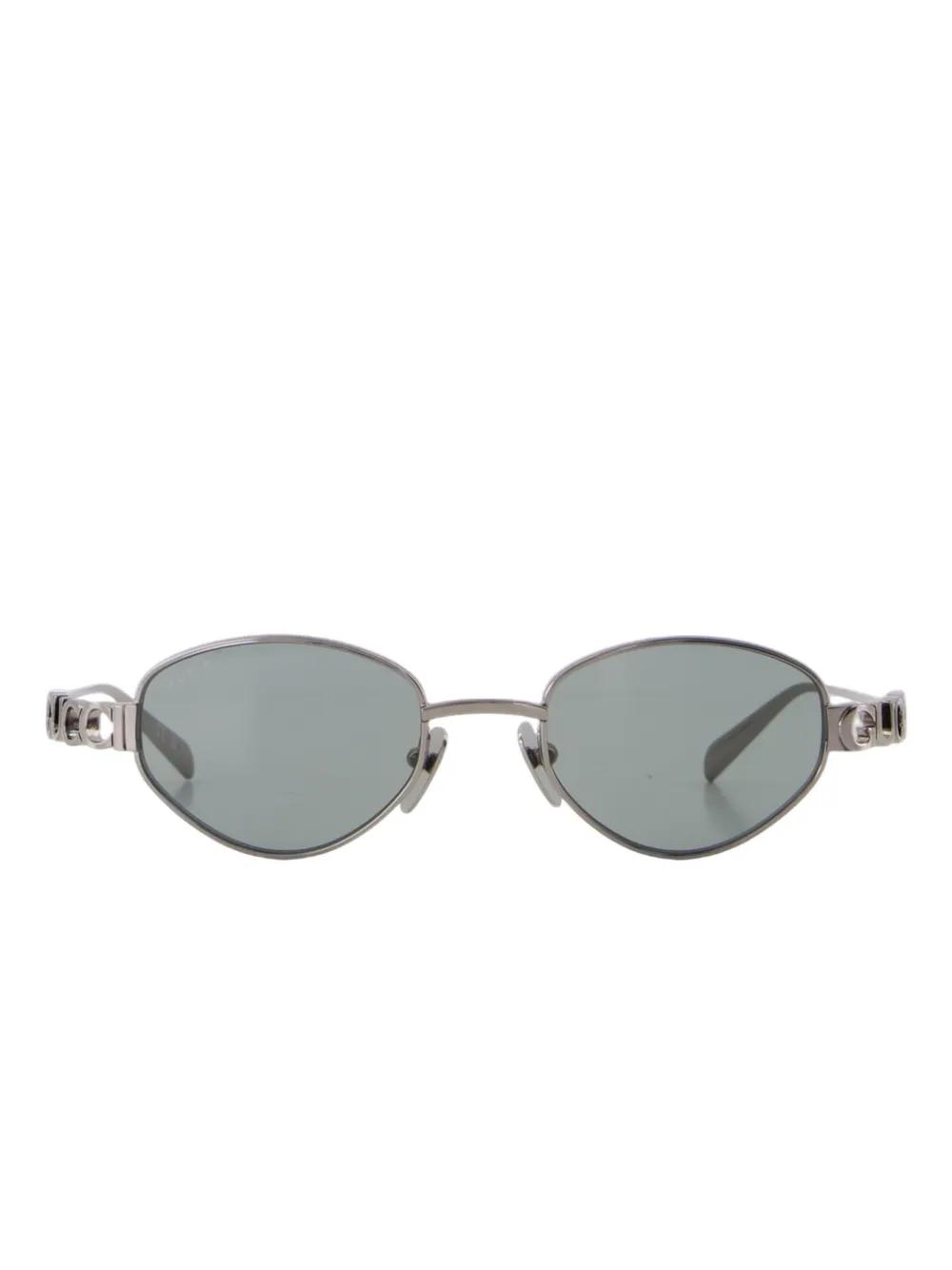 silver-tone oval frame logo detail tinted lenses nose pads These glasses come with a protective case.