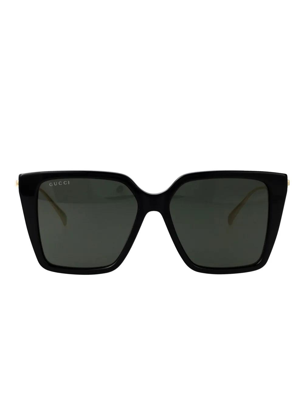 black square frame pearl embellishment gold-tone hardware cut-out Interlocking G straight temples These glasses come with a protective case.