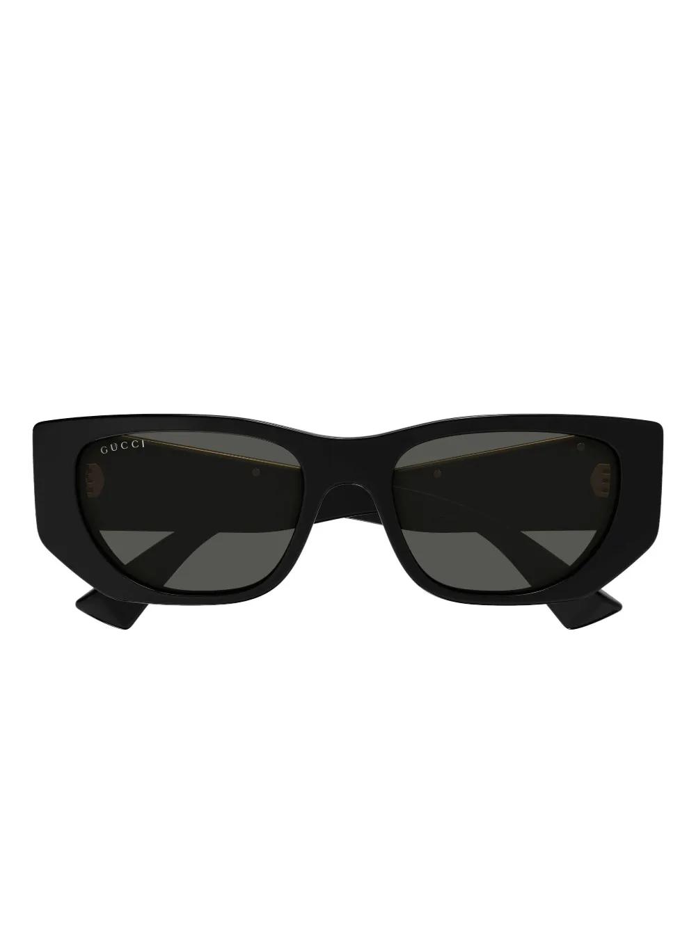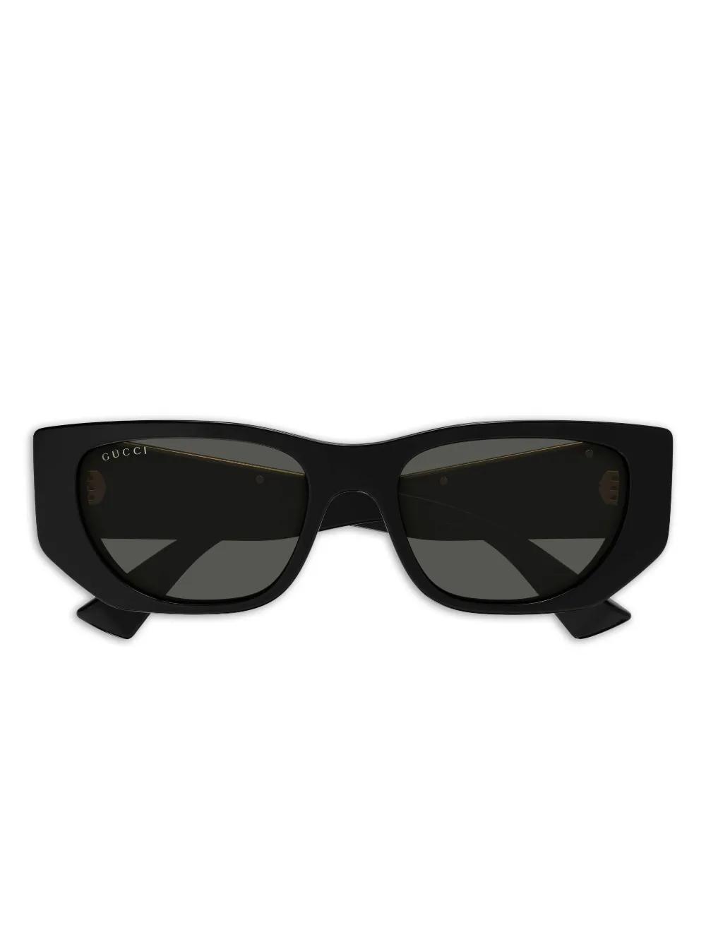 black geometric frame stripe detail tinted lenses nose pads logo detail These glasses come with a protective case.