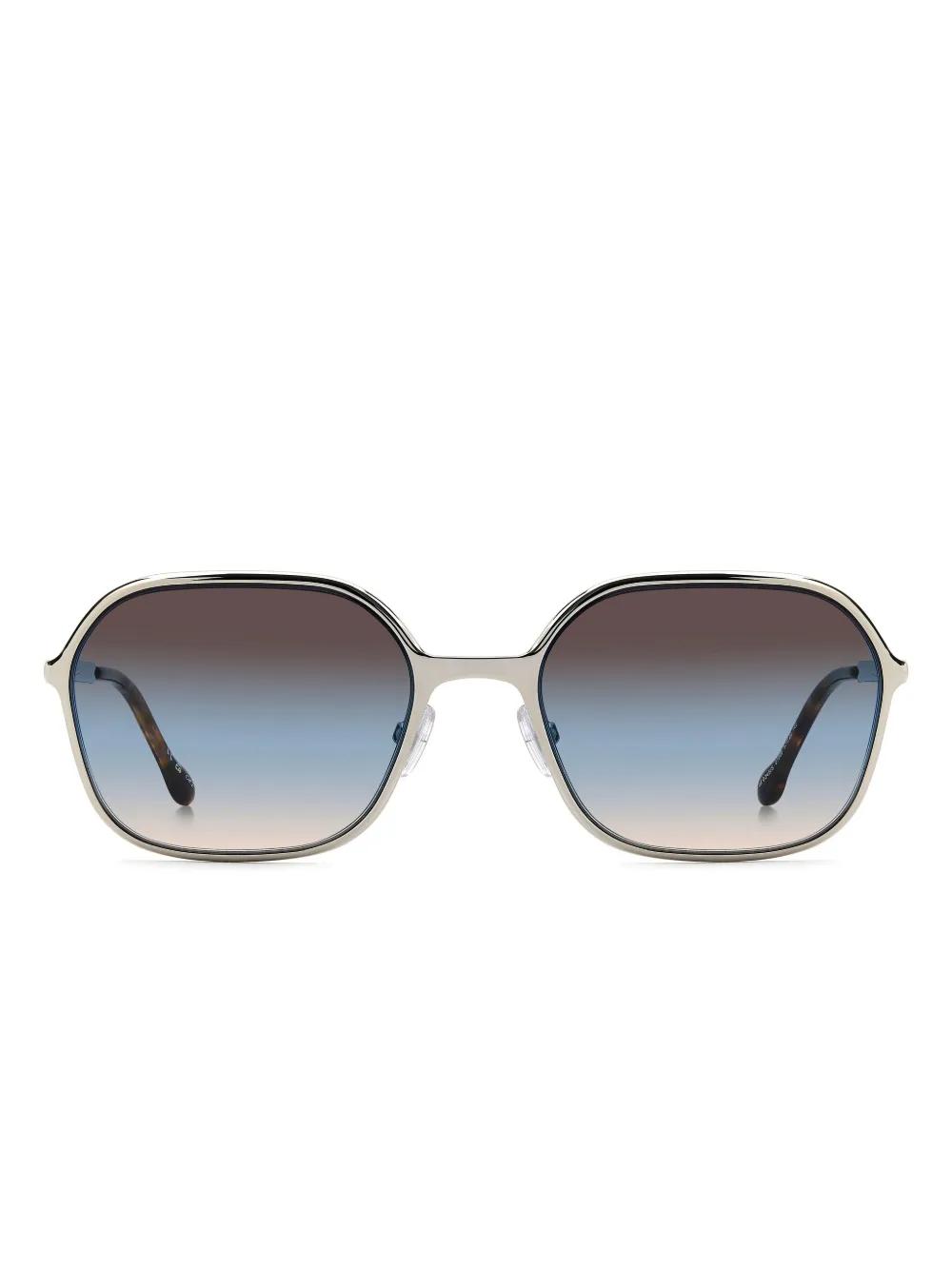 silver-tone geometric frame gradient lenses metal rims subtle temple detail These glasses come with a protective case.