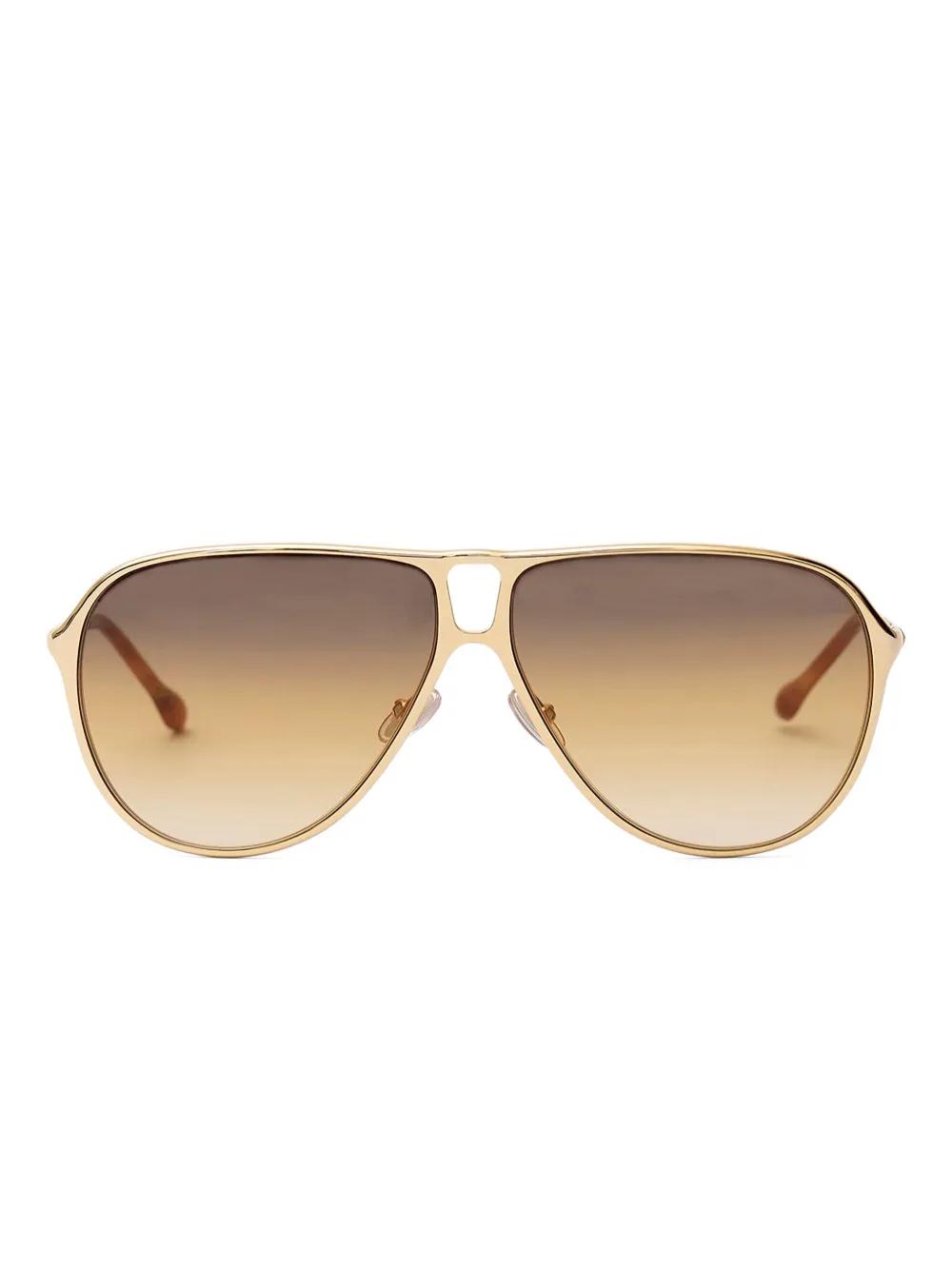 gold-tone pilot frame gradient lenses nose pads These glasses come with a protective case.