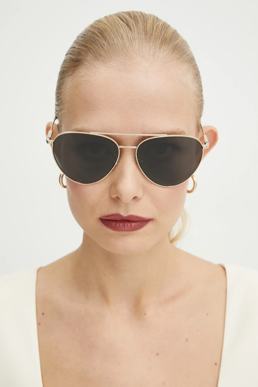 - Kształt oprawek: aviator. - Filtr UV 400 daje maksymalną ochronę przed promieniowaniem słonecznym. - Kat.3 (przepuszcza 8-18% światła) - najczęściej spotykana kategoria filtra zaciemnienia i najbardziej uniwersalna. Okulary z kat. 3 doskonale sprawdzą się w słoneczne dni w codziennym użytkowaniu oraz podczas wypadu na urlop w gorące kraje. - Dołączony pokrowiec. - Do kompletu etui na okulary. - Szerokość oprawy: 140 mm. - Szerokość soczewki: 60 mm.