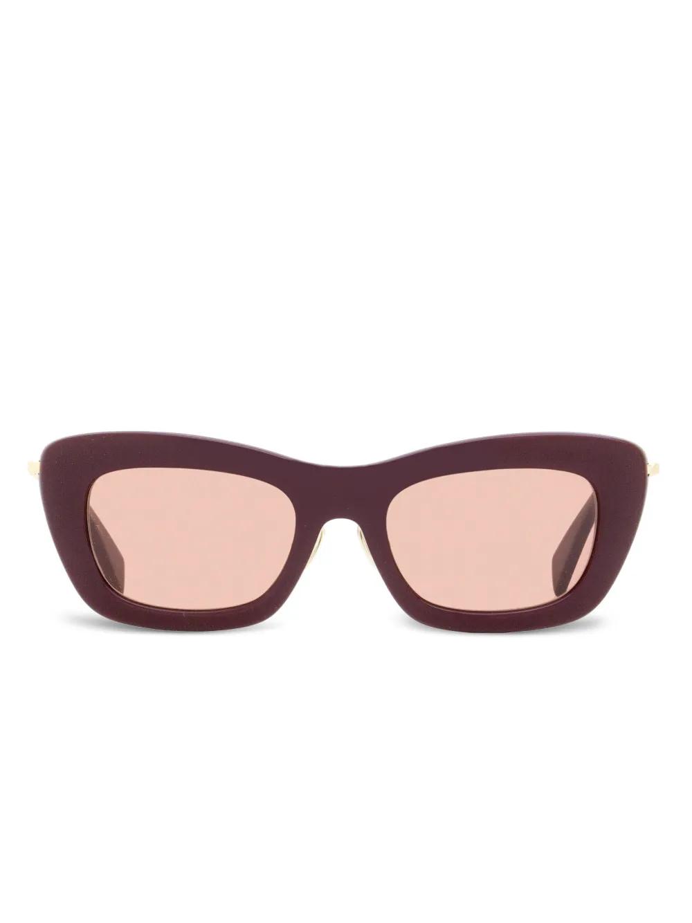burgundy rectangle frame nose pads straight arms These glasses come with a protective case.