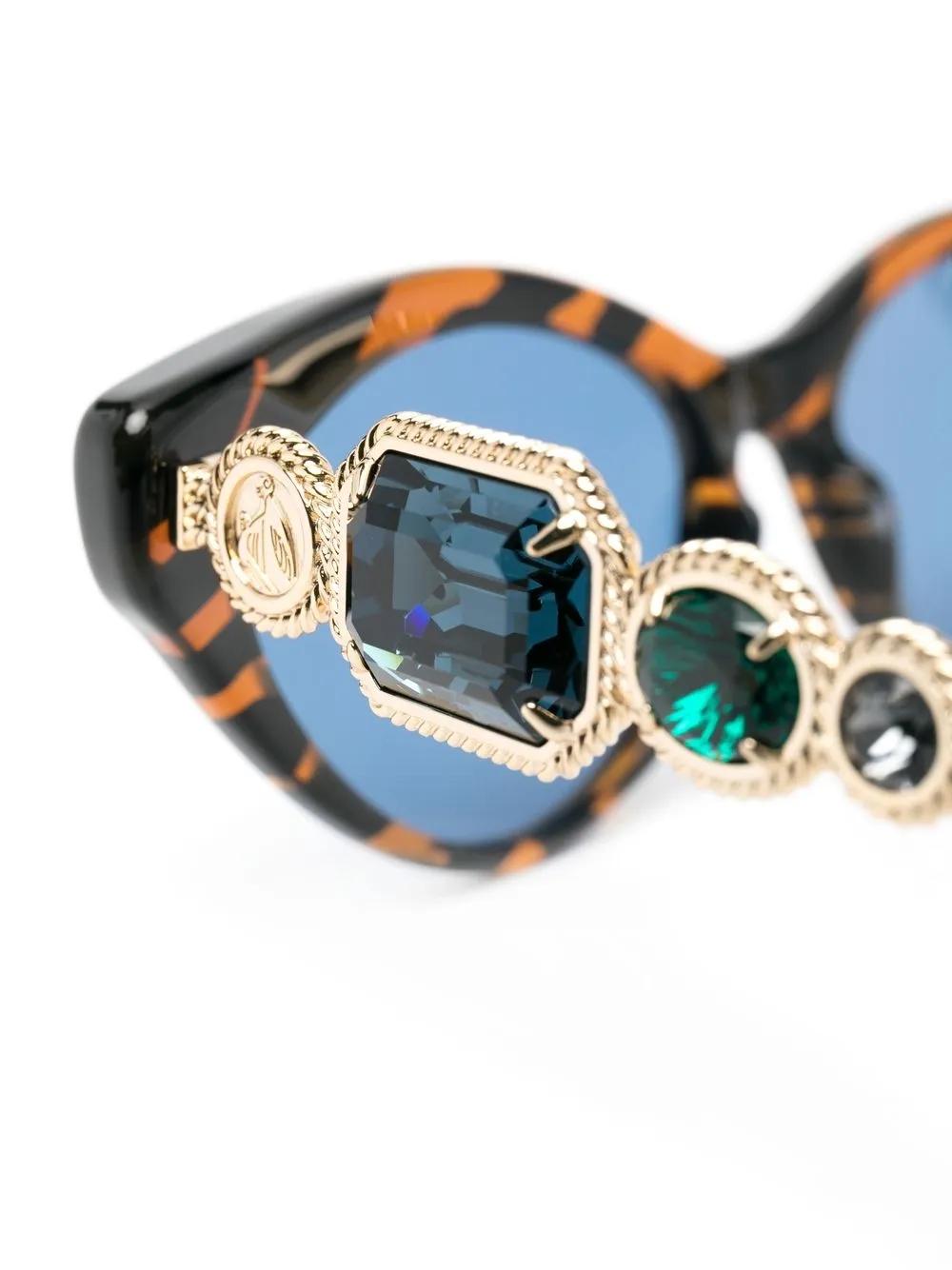 brown acetate cat-eye frame tinted lenses curved arms Swarovski crystal embellishment These glasses come with a protective case.