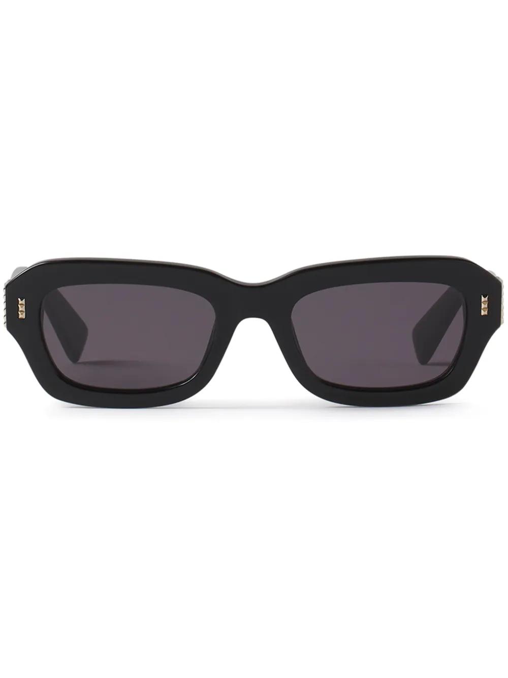 black acetate geometric frame grey tinted lenses UV-protective lenses sculpted arms curved tips gold-tone hardware gold-tone logo lettering UV-protective lenses These glasses come with a protective case.