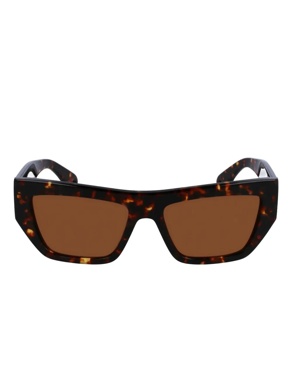 brown square-frame nose pads brown tinted lenses curved tips These glasses come with a protective case.