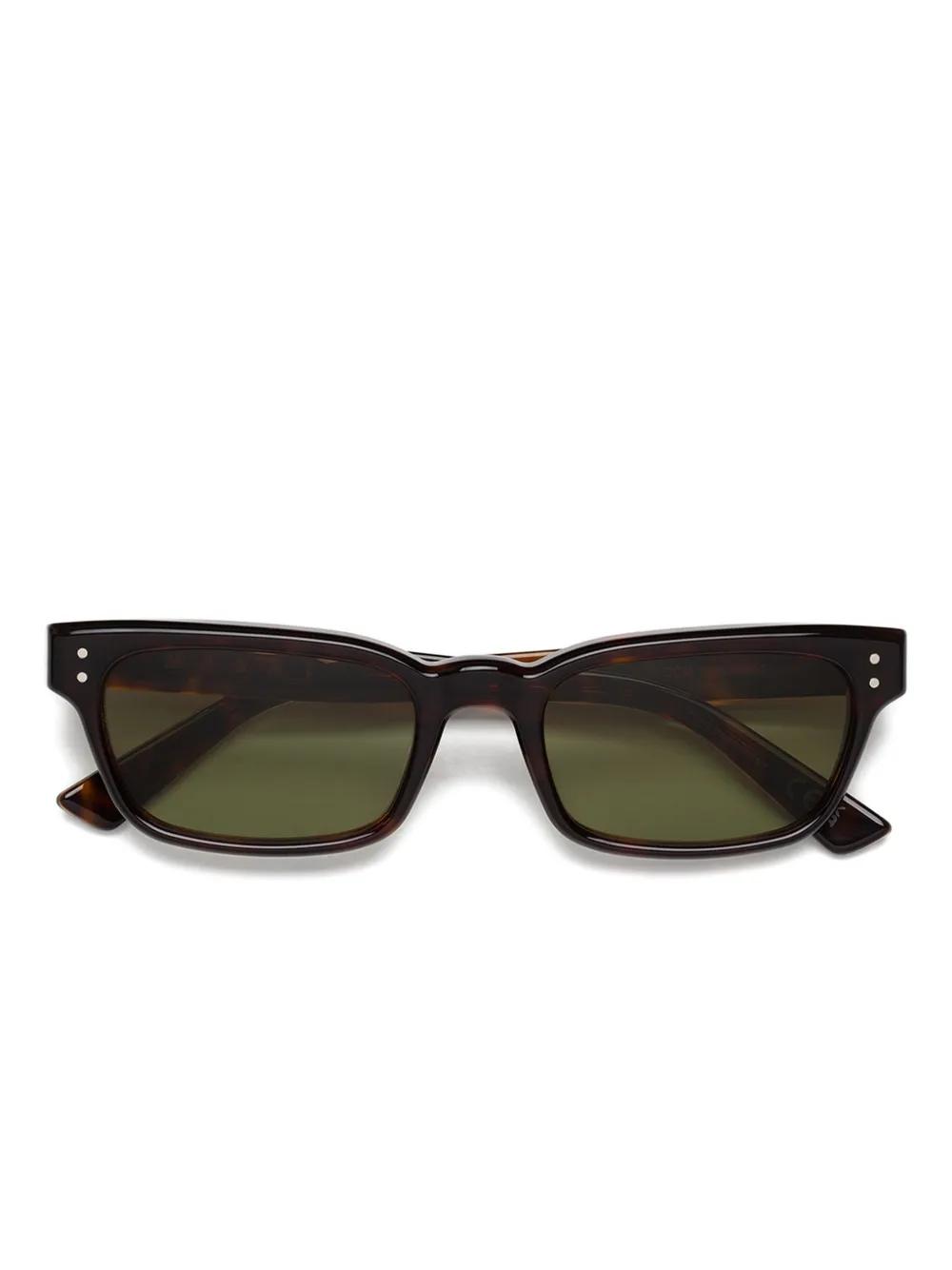 brown rectangle frame tinted lenses logo detail These glasses come with a protective case.