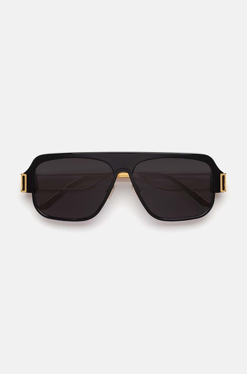 - Kształt oprawek: aviator. - Filtr ochronny UV400 chroni przed promieniowaniem ultrafioletowym. - Model wykonany z acetatu, który jest hipoalergicznym materiałem pochodzenia roślinnego, wykonywany z naturalnej bawełny i włókien drzewnych. Jest on znacznie mocniejszy, trwalszy i bardziej elastyczny niż zwykłe tworzywo sztuczne. - Do modelu dołączone etui i ściereczka do czyszczenia okularów. - Szerokość mostka: 11 mm. - Szerokość oprawy: 140 mm. - Szerokość soczewki: 61 mm.