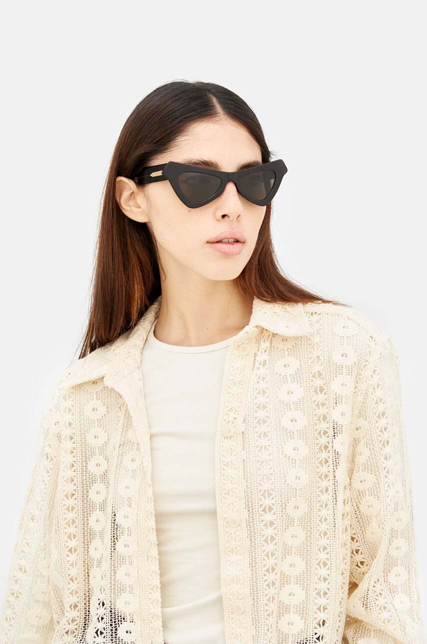 - Kształt oprawek: kocie oczy. - Model wykonany z acetatu, który jest hipoalergicznym materiałem pochodzenia roślinnego, wykonywany z naturalnej bawełny i włókien drzewnych. Jest on znacznie mocniejszy, trwalszy i bardziej elastyczny niż zwykłe tworzywo sztuczne. - Filtr ochronny UV400 chroni przed promieniowaniem ultrafioletowym. - Do kompletu dołączone etui na okulary. - Model wykonany ręcznie we Włoszech. - Szerokość mostka: 20 mm. - Szerokość oprawy: 145 mm. - Szerokość soczewki: 50 mm.
