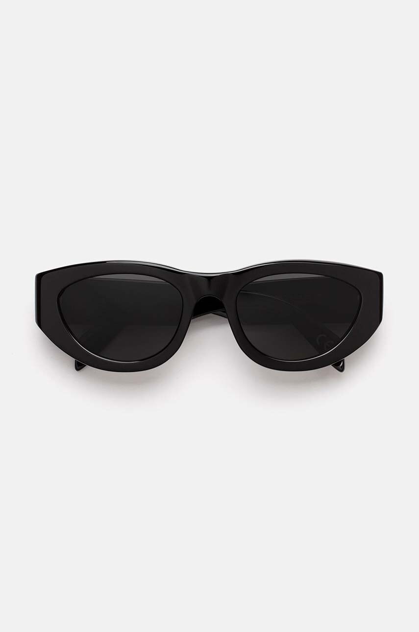 - Kształt oprawek: kocie oczy. - Model wykonany z acetatu, który jest hipoalergicznym materiałem pochodzenia roślinnego, wykonywany z naturalnej bawełny i włókien drzewnych. Jest on znacznie mocniejszy, trwalszy i bardziej elastyczny niż zwykłe tworzywo sztuczne. - Filtr ochronny UV400 chroni przed promieniowaniem ultrafioletowym. - Model wykonany ręcznie we Włoszech. - Do kompletu dołączone etui na okulary. - Szerokość mostka: 16 mm. - Szerokość oprawy: 145 cm. - Szerokość soczewki: 52 cm.