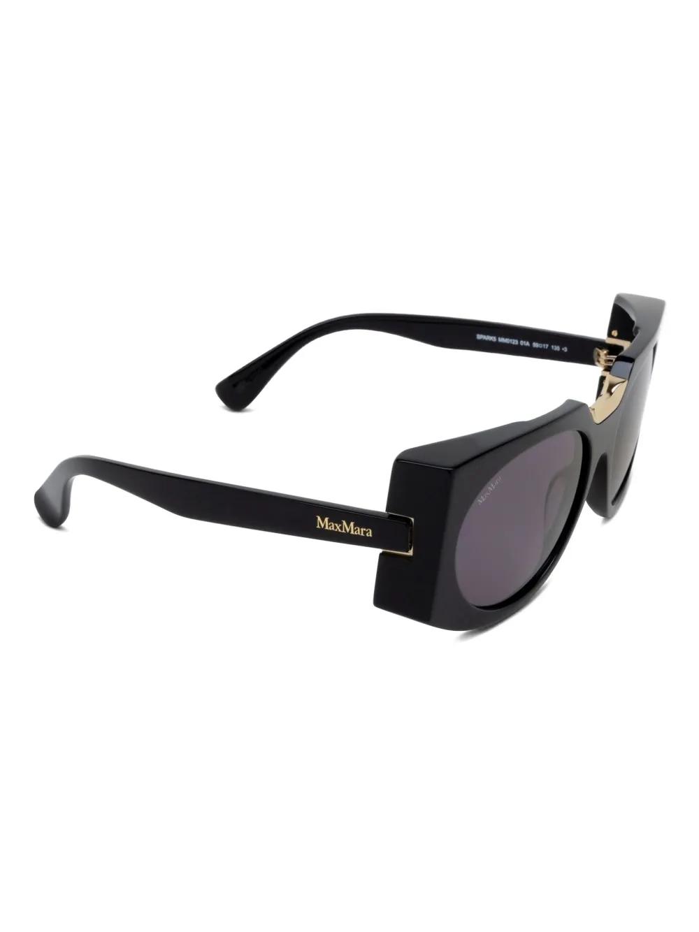 black gold-tone detailing grey lenses curved temples These glasses come with a protective case.