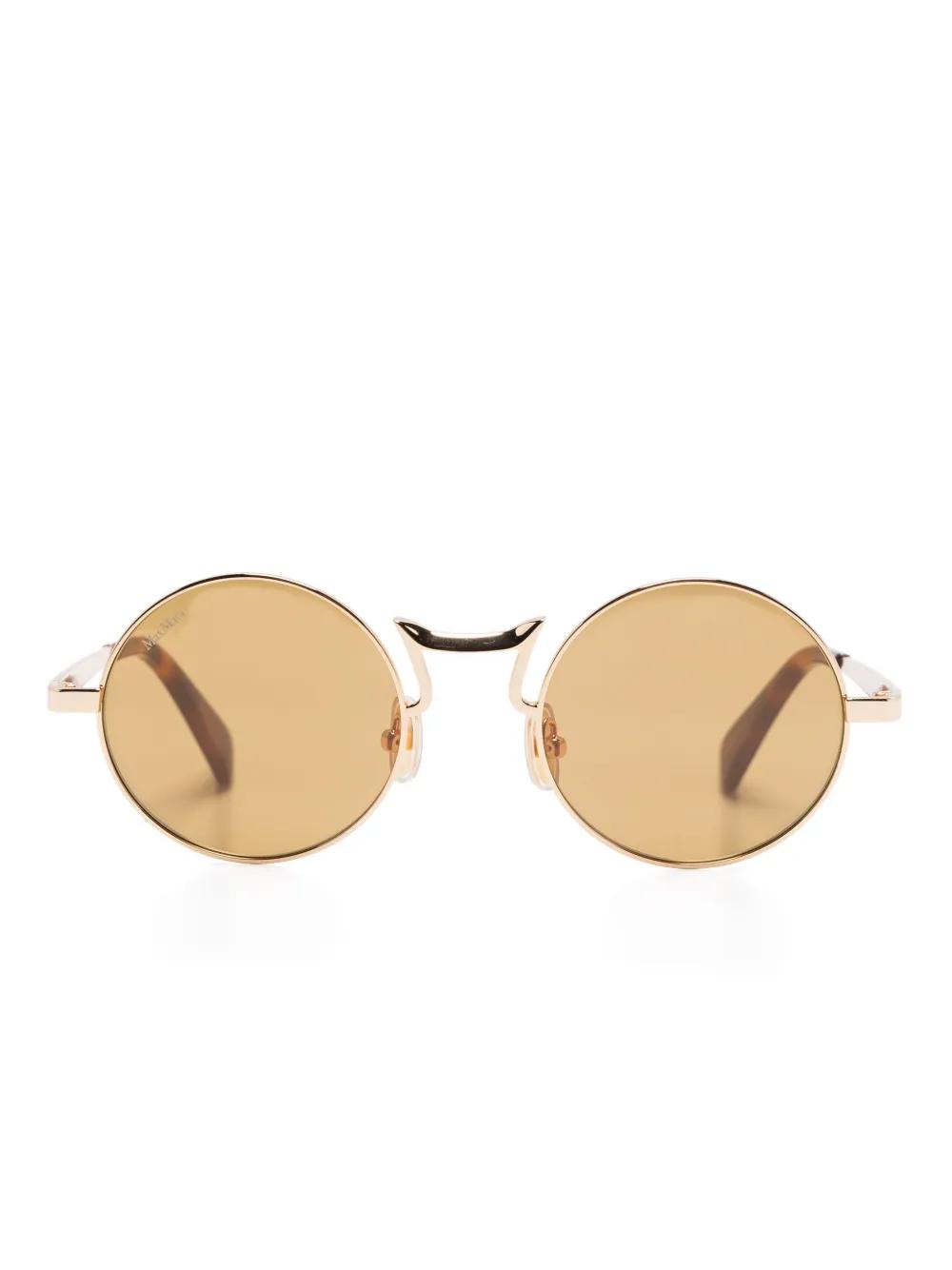 gold-tone/brown round frame yellow tinted lenses UV-protective lenses lens decal metal brow bar logo-engraved arm tortoiseshell effect straight arms curved tips nose pads These glasses come with a protective case.