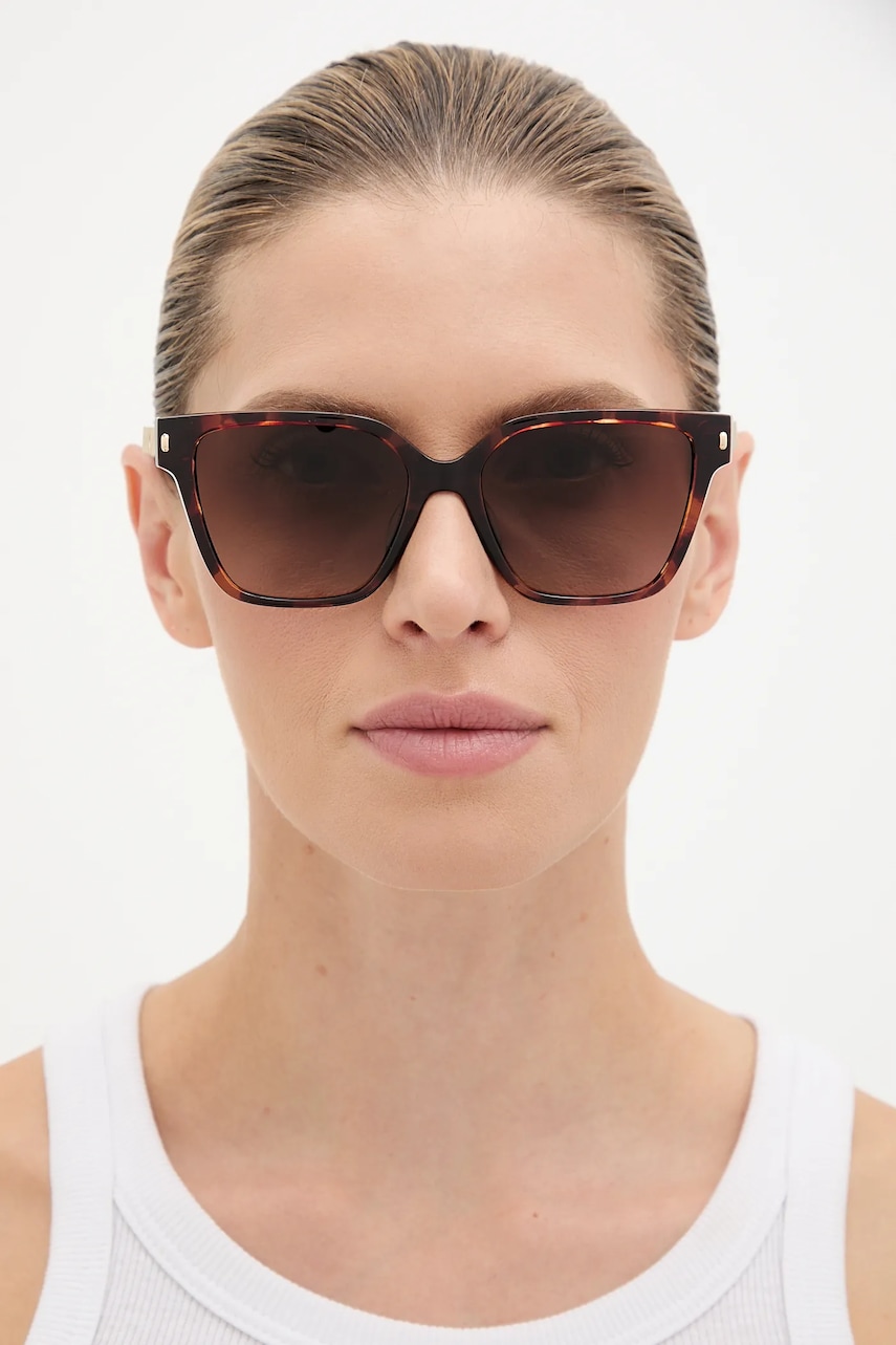 - Kształt oprawek: kwadratowy. - Filtr UV 400 daje maksymalną ochronę przed promieniowaniem słonecznym. - Kat.3 (przepuszcza 8-18% światła) - najczęściej spotykana kategoria filtra zaciemnienia i najbardziej uniwersalna. Okulary z kat. 3 doskonale sprawdzą się w słoneczne dni w codziennym użytkowaniu oraz podczas wypadu na urlop w gorące kraje. - Do modelu dołączone etui i ściereczka do czyszczenia okularów. - Szerokość oprawy: 146 mm. - Szerokość soczewki: 54 mm.