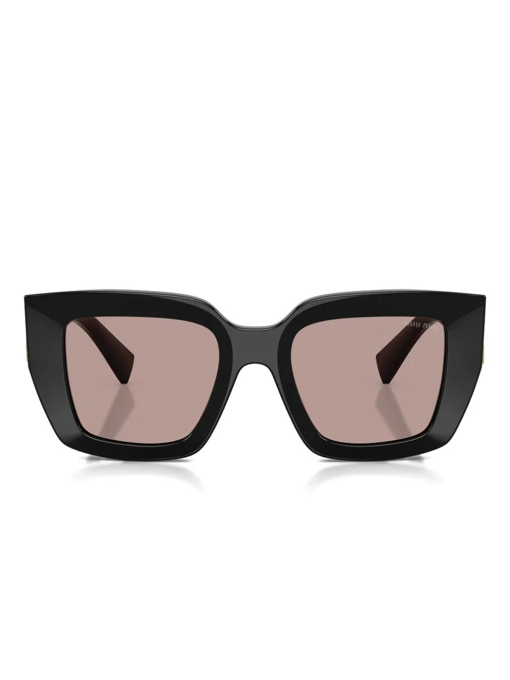 black square frame pink tinted lenses nose pads curved tips These glasses come with a protective case.