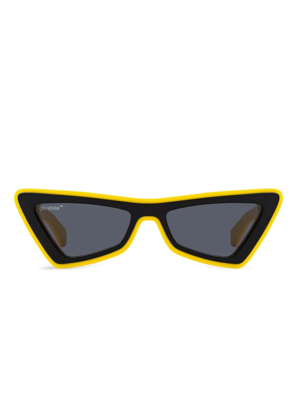 yellow dark grey lenses two-tone design cat-eye frame signature Arrows motif These glasses come with a protective case.