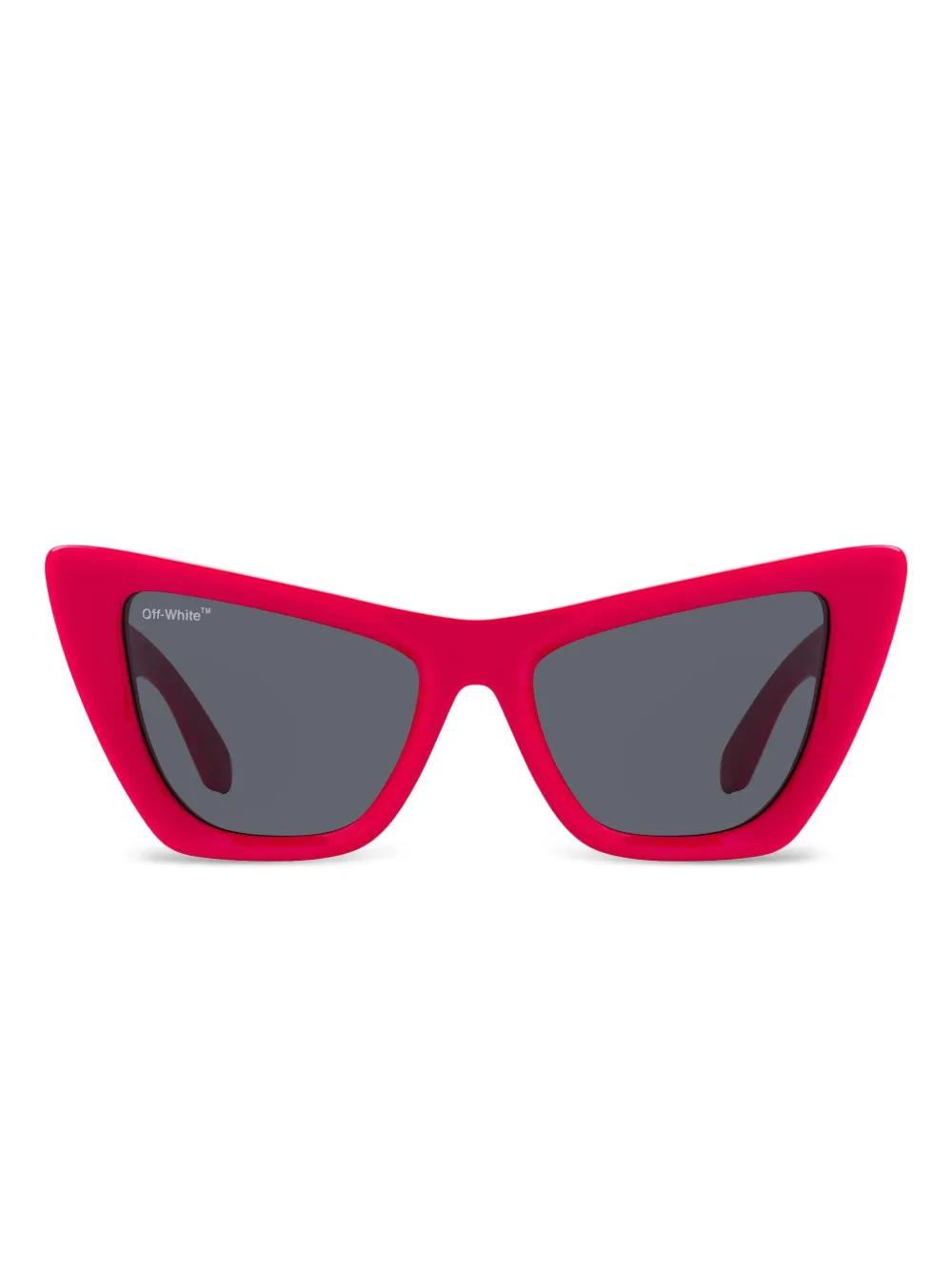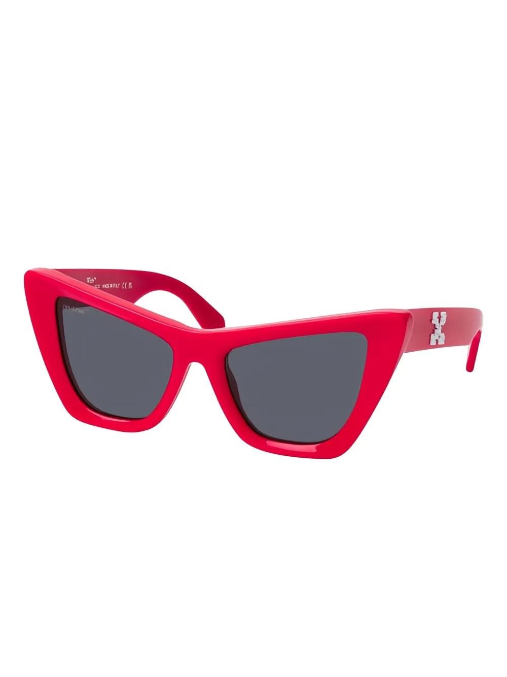 red dark grey lenses cat-eye frame full rim logo detail These glasses come with a protective case.