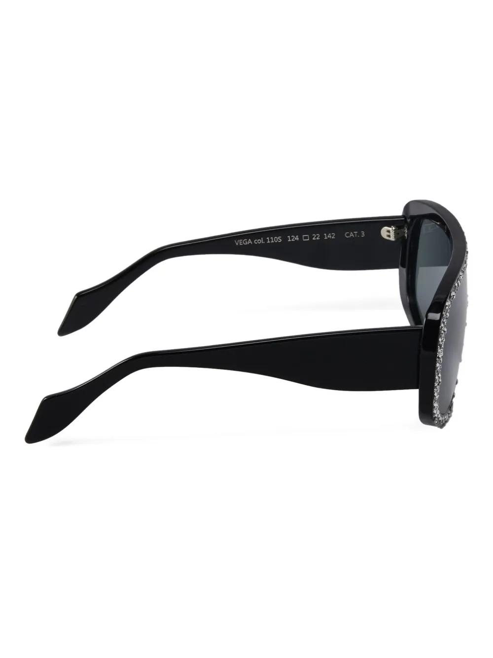 black geometric frame crystal embellishment grey lenses dark grey arms These glasses come with a protective case.