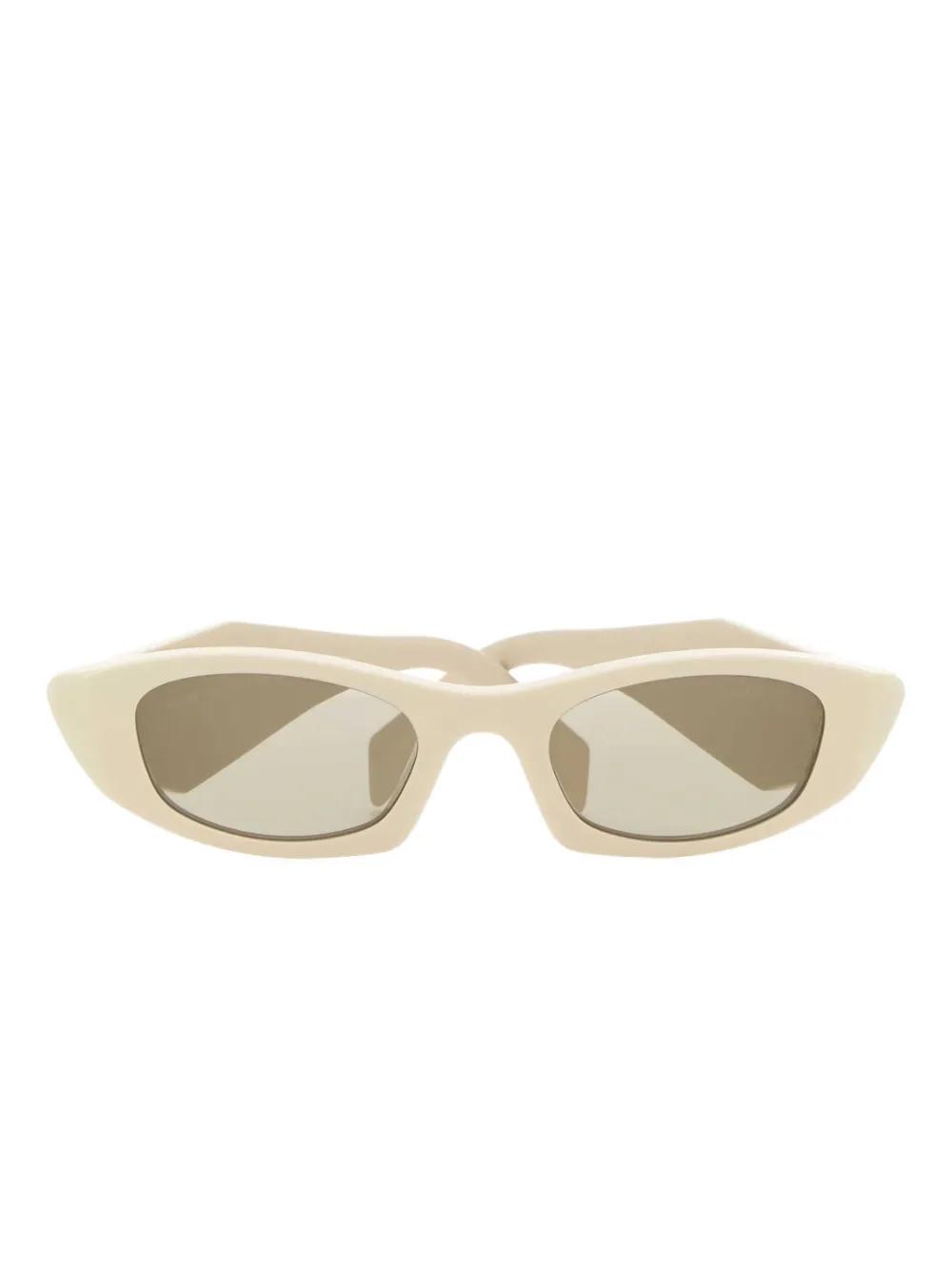 white geometric frame tinted lenses logo detail These glasses come with a protective case.