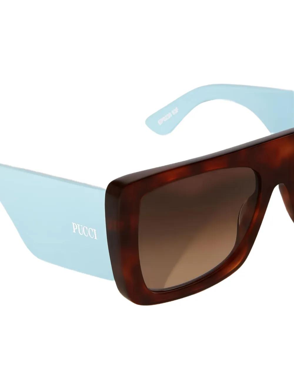 brown rectangle frame tinted lenses logo detail nose pads These glasses come with a protective case.