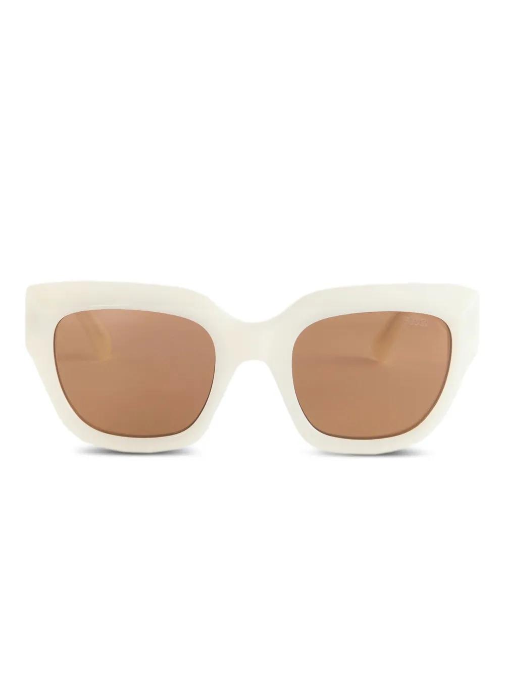 white square frame brown lenses logo detail acetate material These glasses come with a protective case.