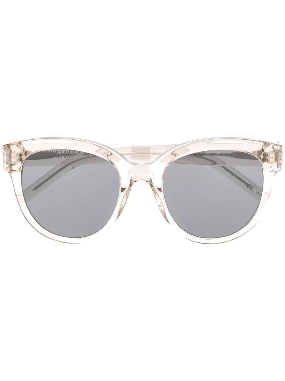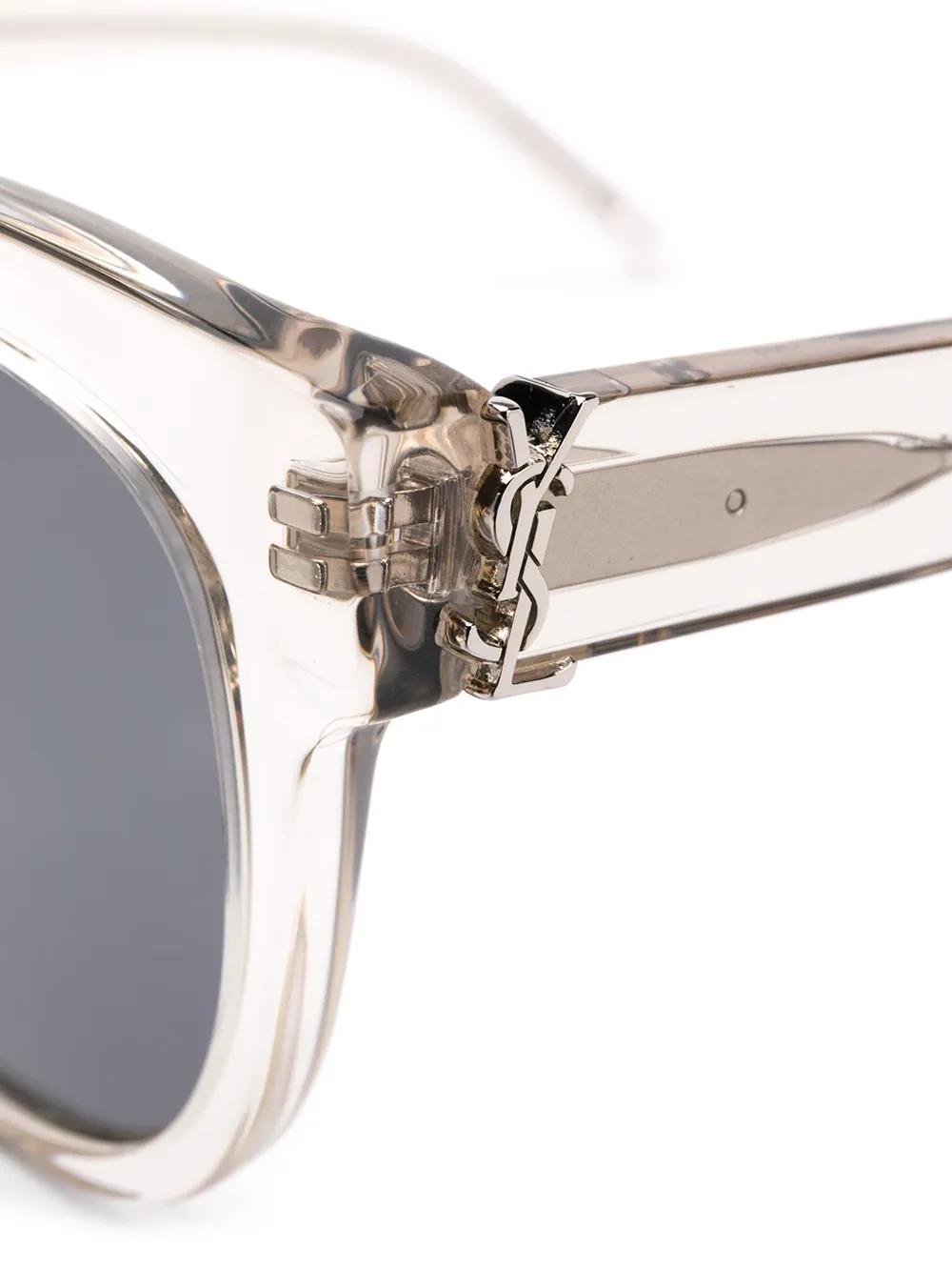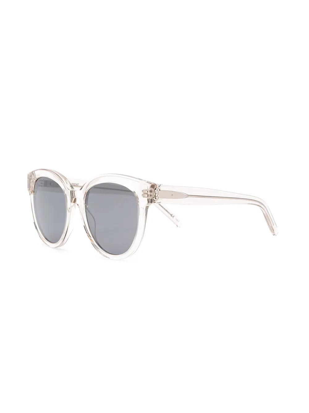 Your new everyday sunglasses! With a transparent body, these round frame sunglasses from Saint Laurent Eyewear will look just perfect with any style you wear. Simple, but so cool. Featuring round frames, dark tinted lenses and straight arms with curved tips. This item comes with a protective case.