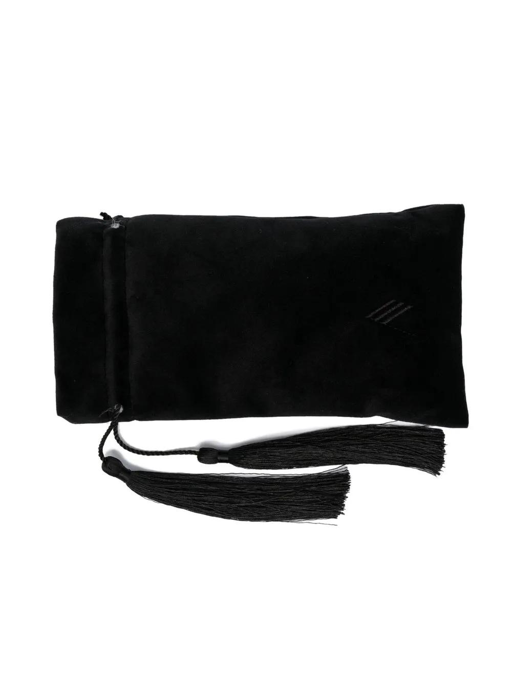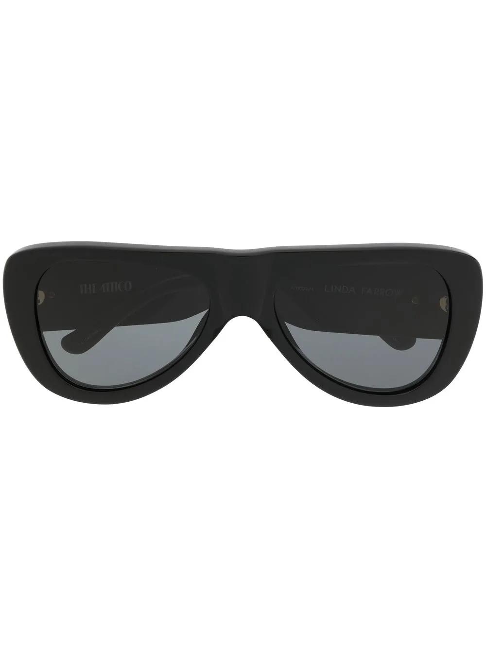 black grey tinted lenses pilot frame logo print at the arm curved tips These glasses come with a protective case.
